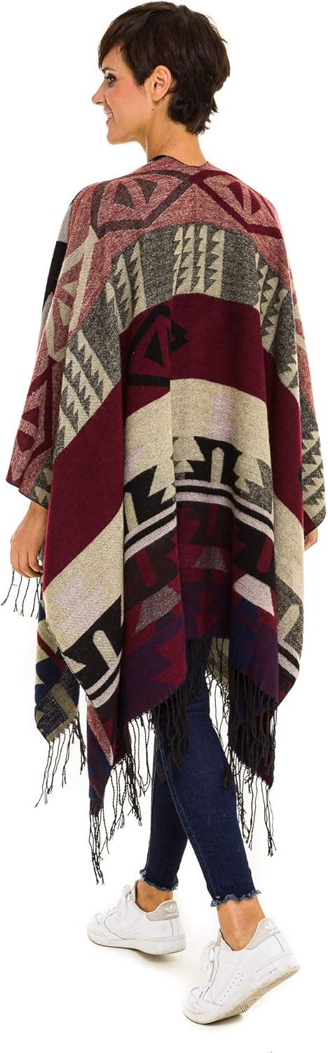 Cardigan Poncho Cape: Women Elegant Cardigan Shawl Wrap Sweater Coat for Fall Winter(Geometric Design – White Brown)