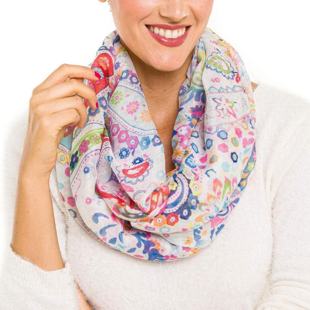 Infinity Scarf for Women Lightweight Fashion Scarves for Summer Fall(Ibiza Collection 1 – White Paisley)
