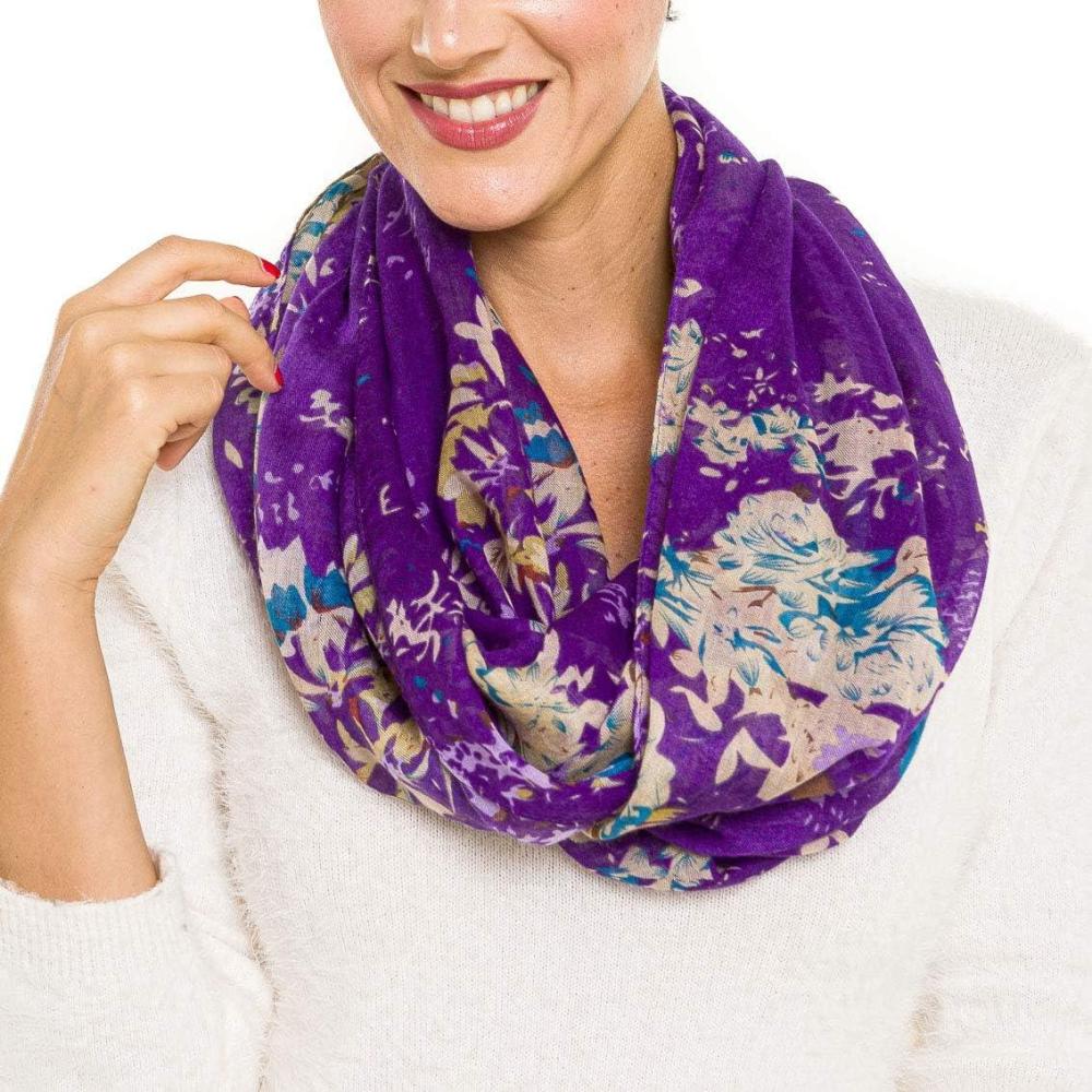 Infinity Scarf for Women Lightweight Fashion Scarves for Summer Fall(Ibiza Collection 4 – Purple Floral)