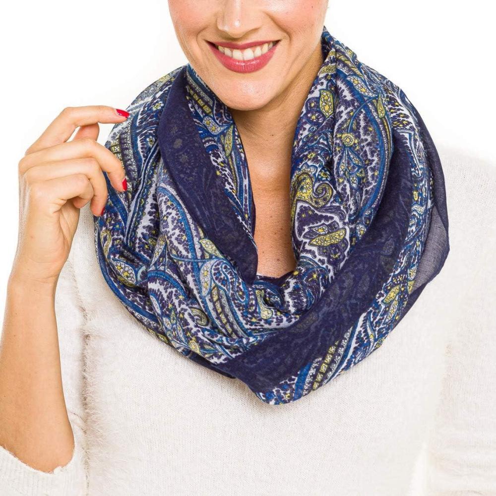Infinity Scarf for Women Lightweight Fashion Scarves for Summer Fall(Ibiza Collections 19 – Navy Paisley)