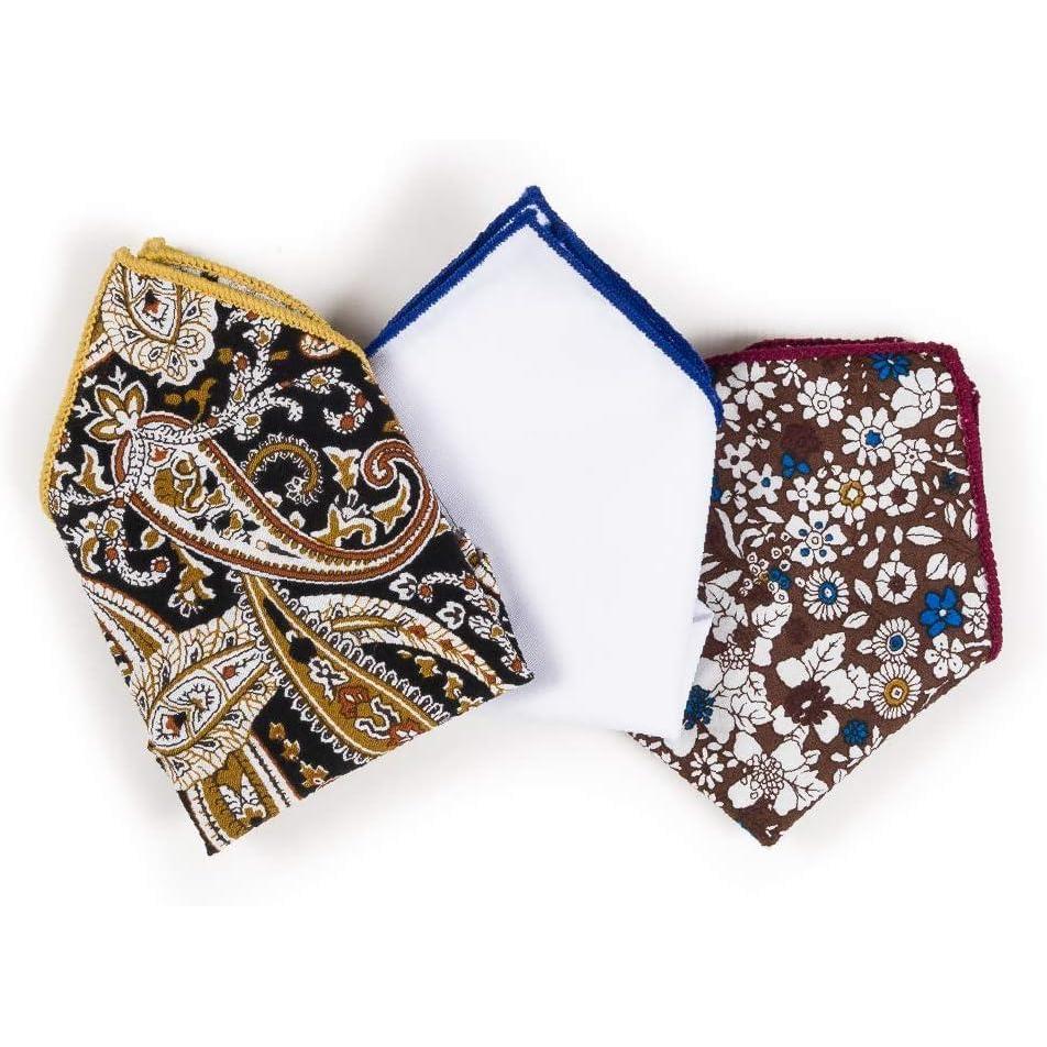 MELIFLUOS DESIGNED IN SPAIN Pocket Square Handkerchief Hanky For Elegant Men Suit Tuxedo Wedding Party 3 PCS(Elegance)