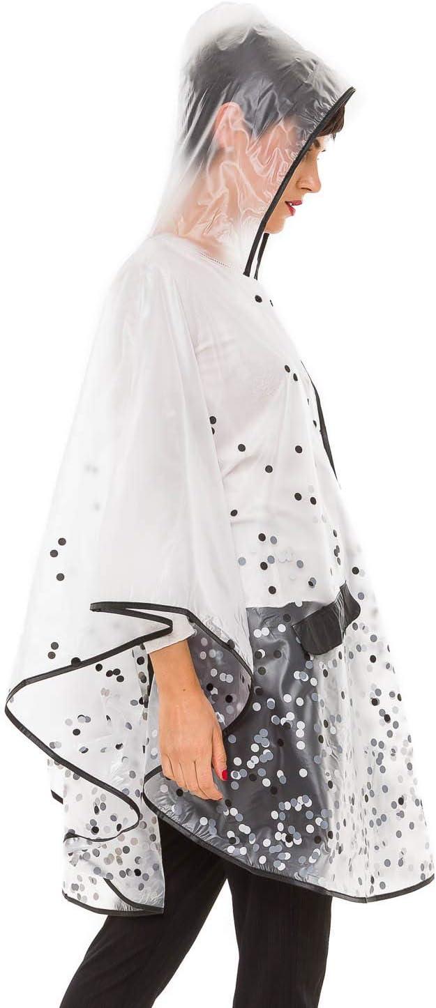MELIFLUOS DESIGNED IN SPAIN Raincoat Poncho for Women with Hood Portable Foldable Fashion Polka Dots Design