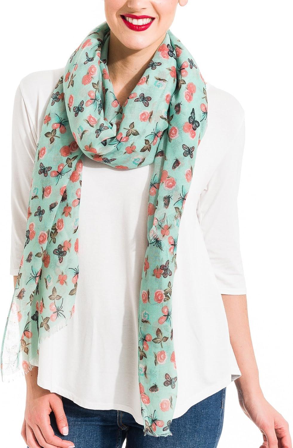 MELIFLUOS DESIGNED IN SPAIN Scarf for Women Lightweight Animal Butterfly Fashion Summer Fall Scarves Shawl Wraps(Malaga Collection 8 – Green Butterfy Design)