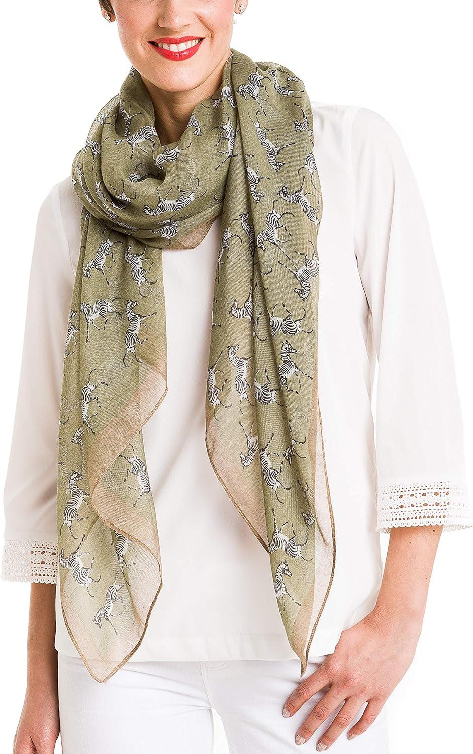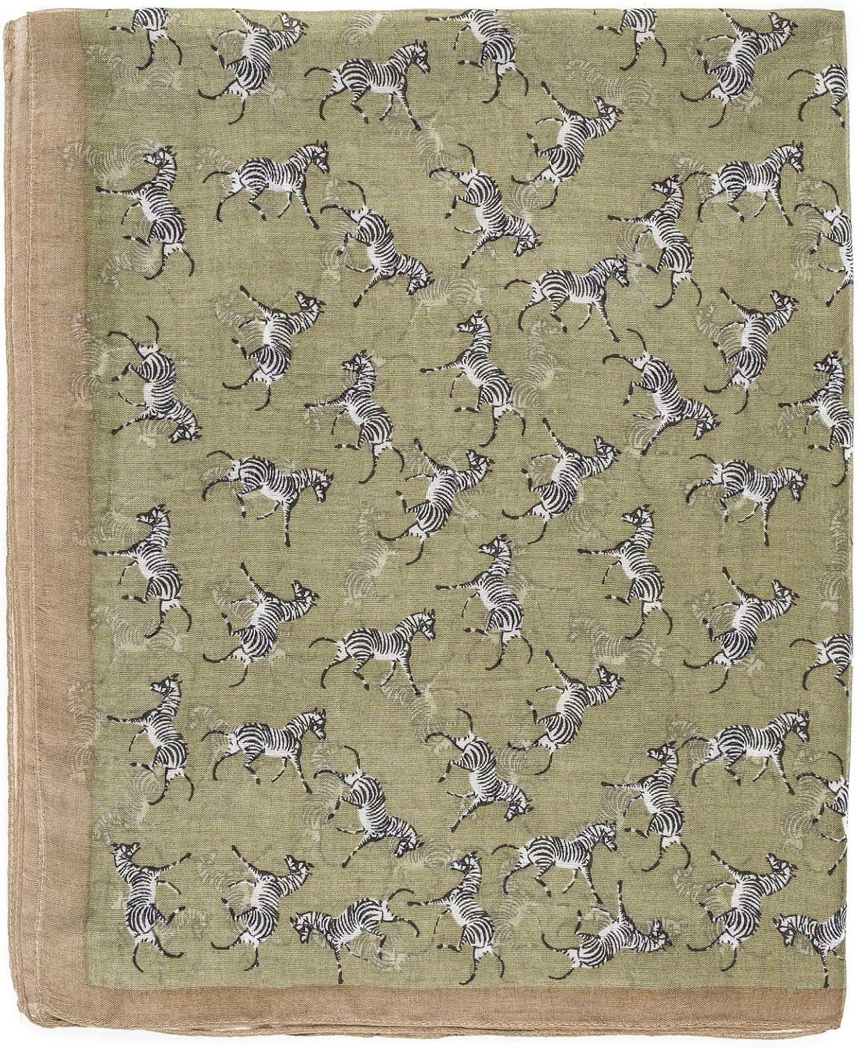 MELIFLUOS DESIGNED IN SPAIN Scarf for Women Lightweight Animal Butterfly Fashion Summer Fall Scarves Shawl Wraps(Malaga Collections 16 – Green With Zebra Design)