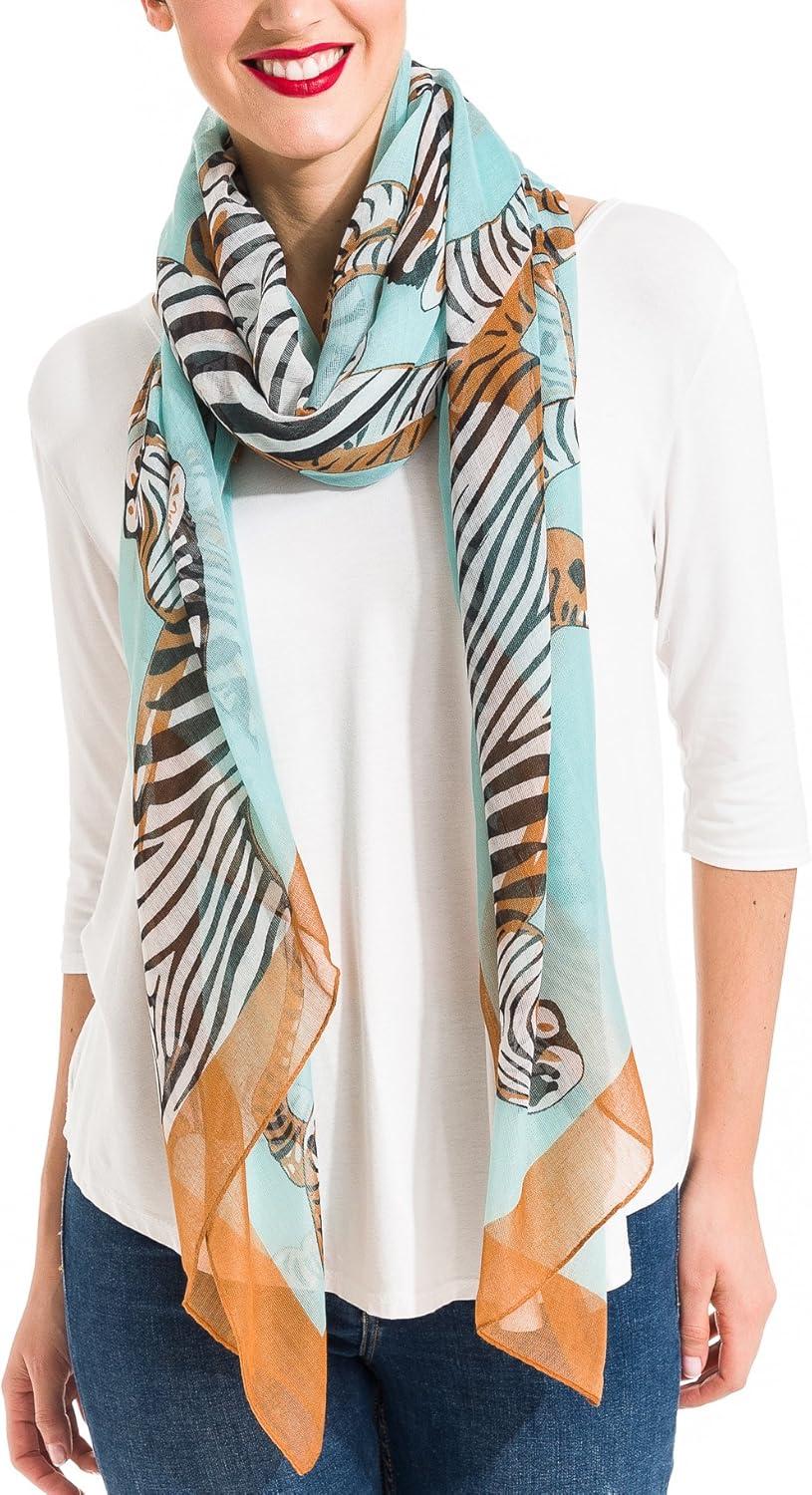 MELIFLUOS DESIGNED IN SPAIN Scarf for Women Lightweight Animal Butterfly Fashion Summer Fall Scarves Shawl Wraps(Malaga Collections 21 – Aqua With Zebra Design)