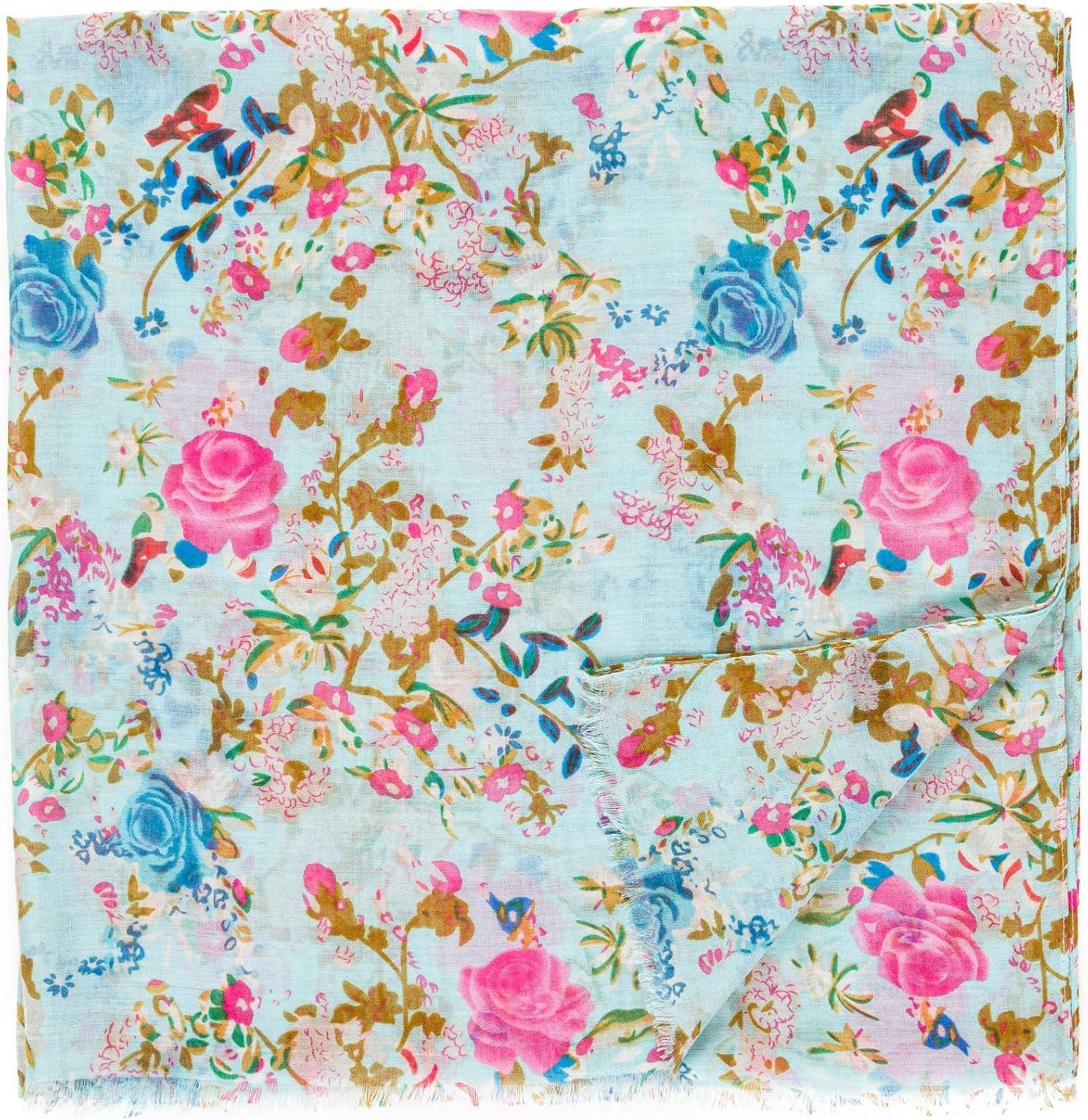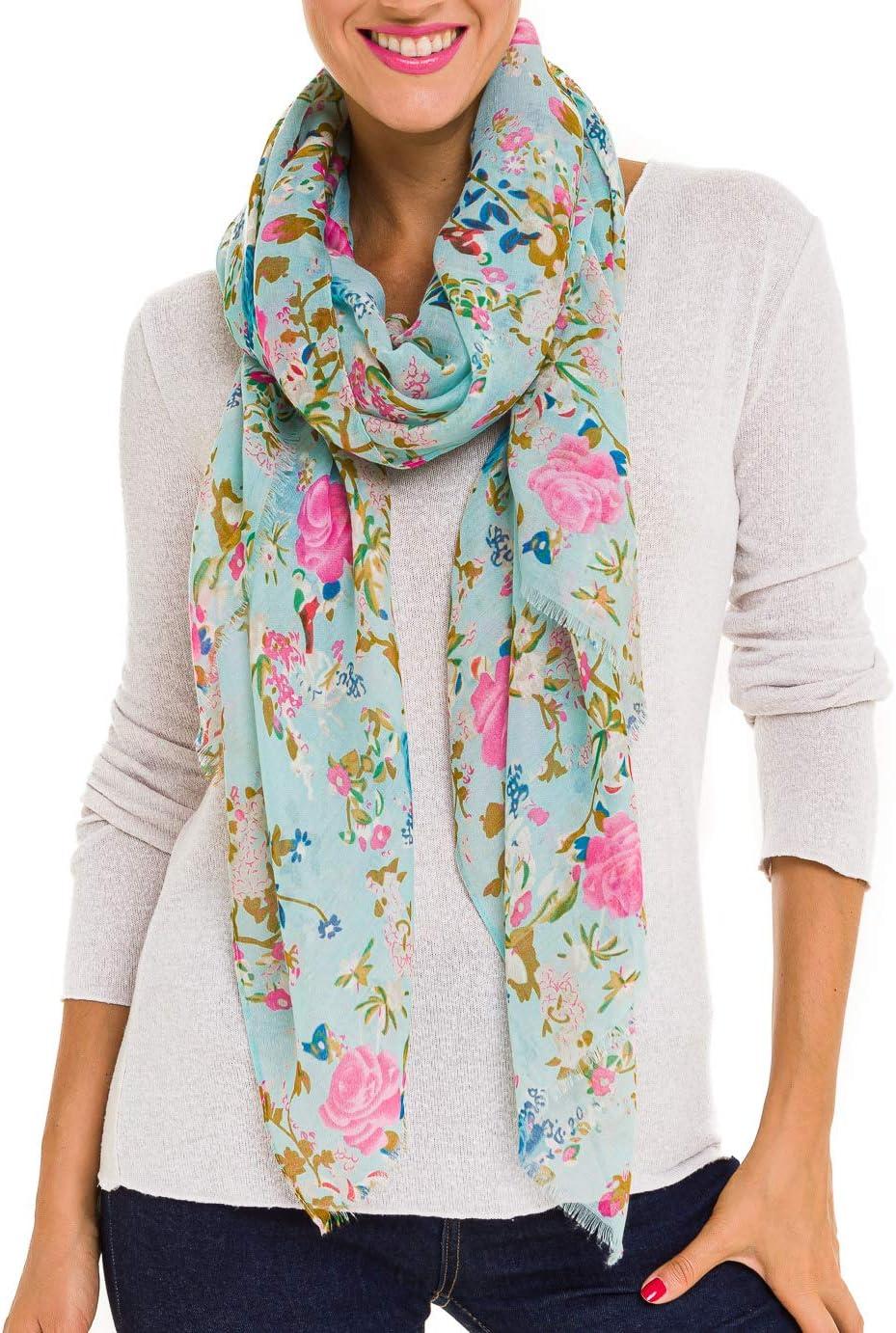 MELIFLUOS DESIGNED IN SPAIN Scarf for Women Lightweight Floral Flower for Summer Fall Scarves Shawl Wrap(Valencia Collection 2- Aqua Floral Design)