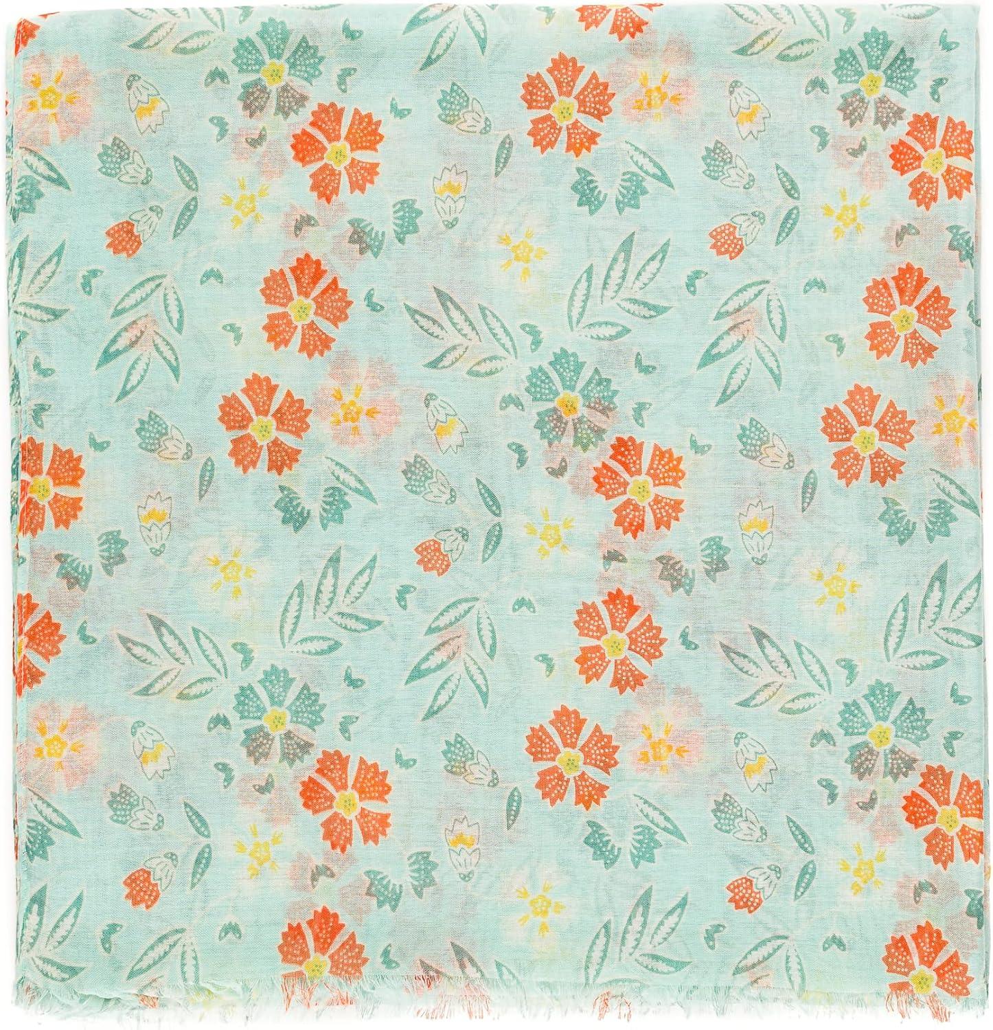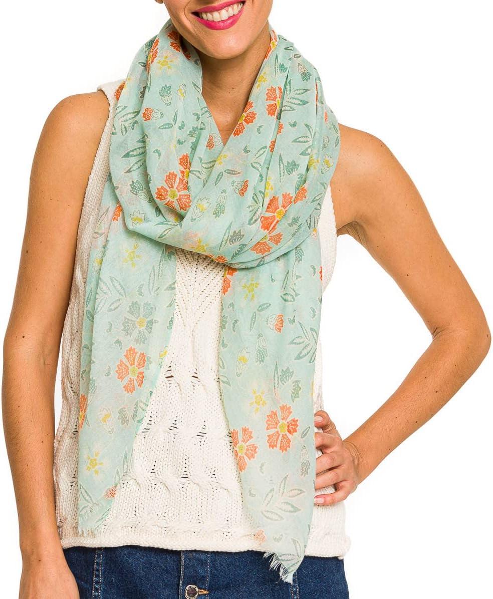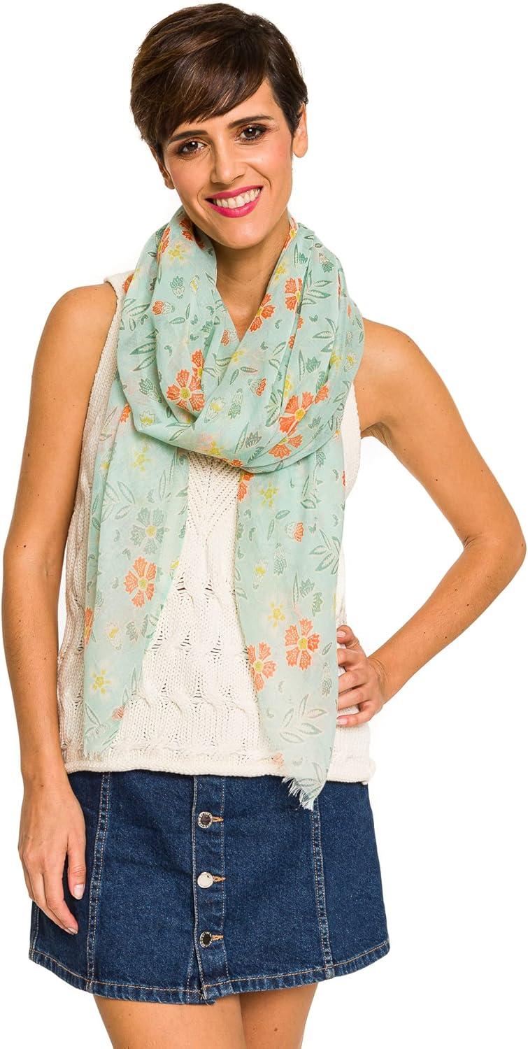 MELIFLUOS DESIGNED IN SPAIN Scarf for Women Lightweight Floral Flower for Summer Fall Scarves Shawl Wrap(Valencia Collection 8 – Green Flower)