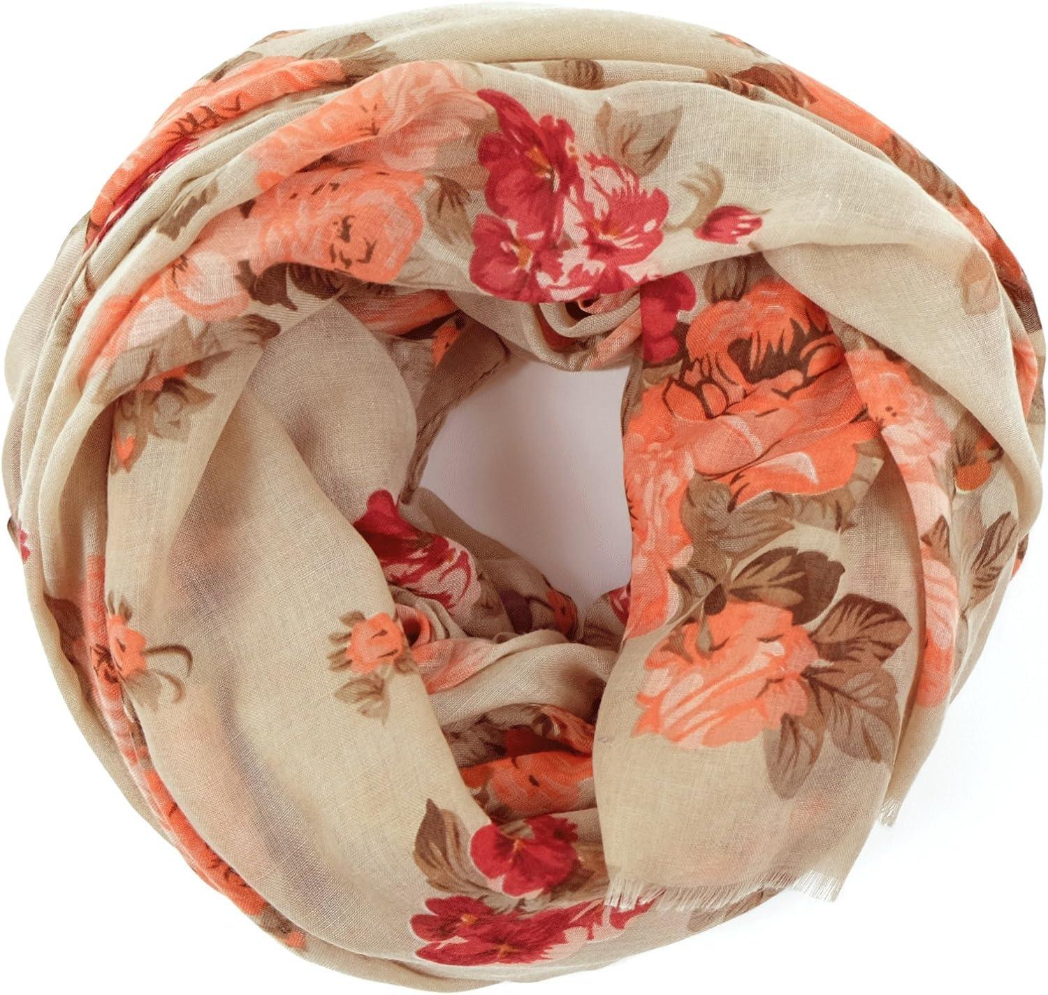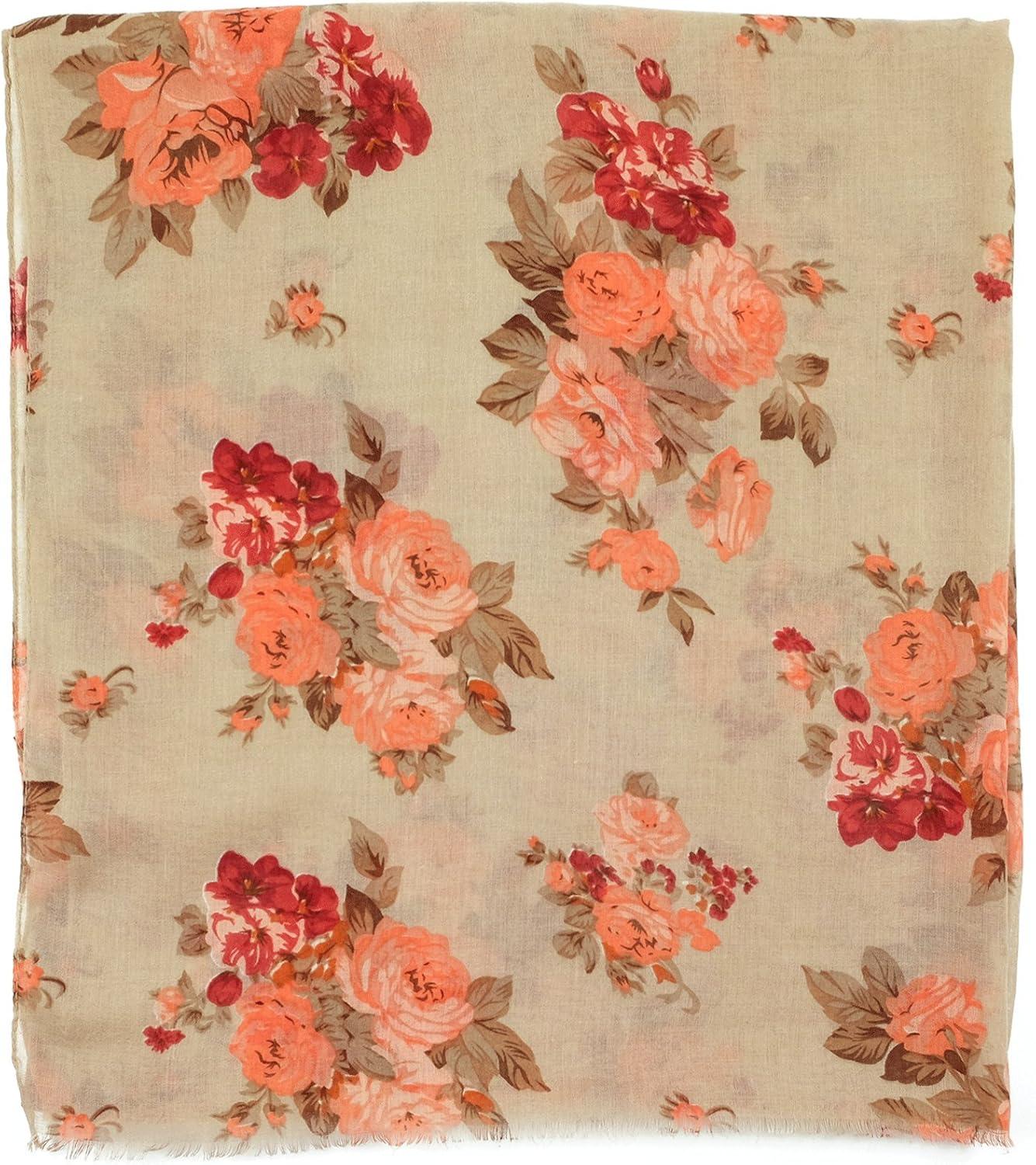 MELIFLUOS DESIGNED IN SPAIN Scarf for Women Lightweight Floral Flower for Summer Fall Scarves Shawl Wrap(Valencia Collection 9 – Beige Rose)