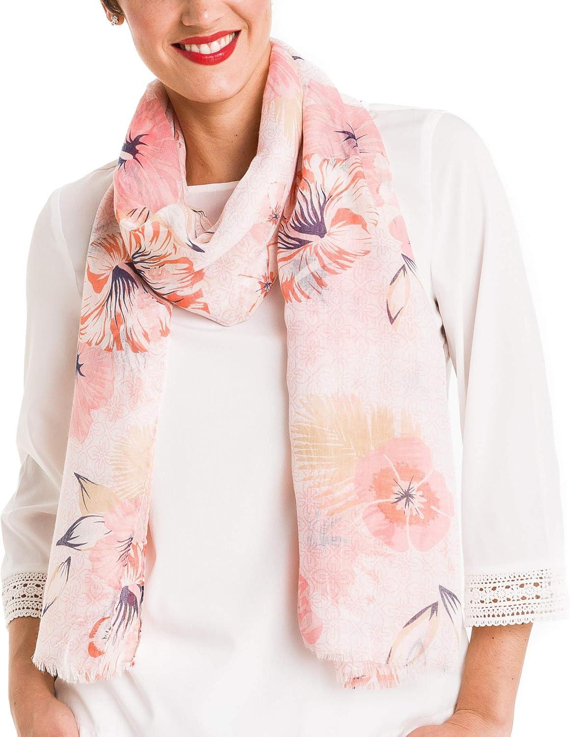 MELIFLUOS DESIGNED IN SPAIN Scarf for Women Lightweight Floral Flower for Summer Fall Scarves Shawl Wrap(Valencia Collection 9 – Pink Rose)