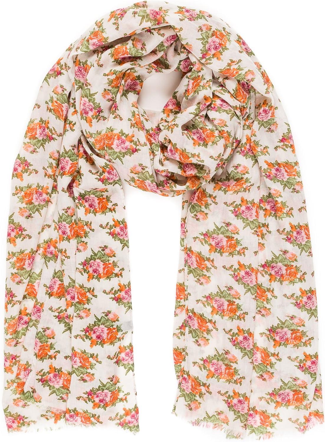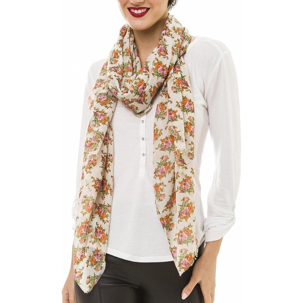 MELIFLUOS DESIGNED IN SPAIN Scarf for Women Lightweight Floral Flower for Summer Fall Scarves Shawl Wrap(Valencia Collections 10 – Beige Flower)