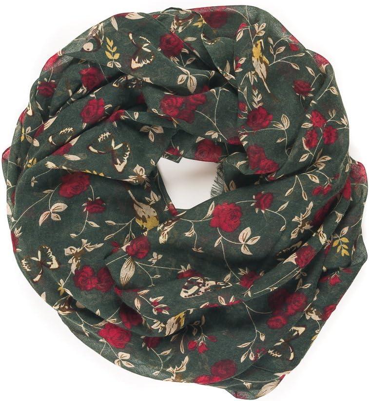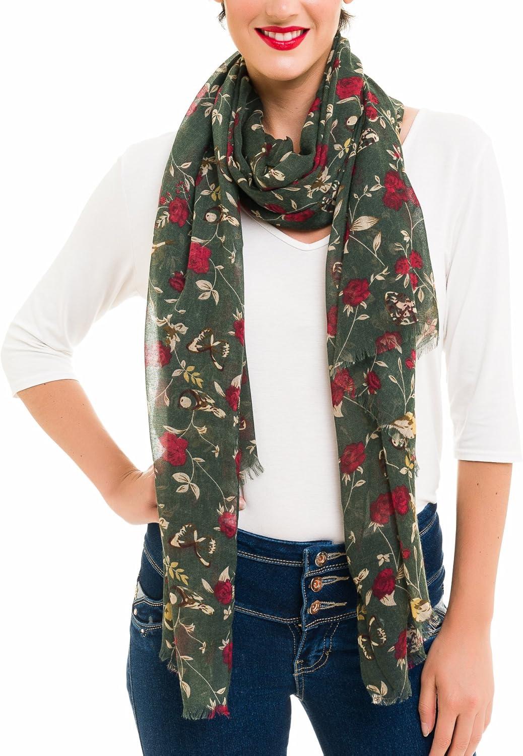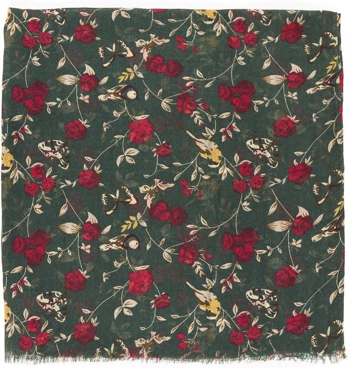 MELIFLUOS DESIGNED IN SPAIN Scarf for Women Lightweight Floral Flower for Summer Fall Scarves Shawl Wrap(Valencia Collections 15 – Green With Red Flower)