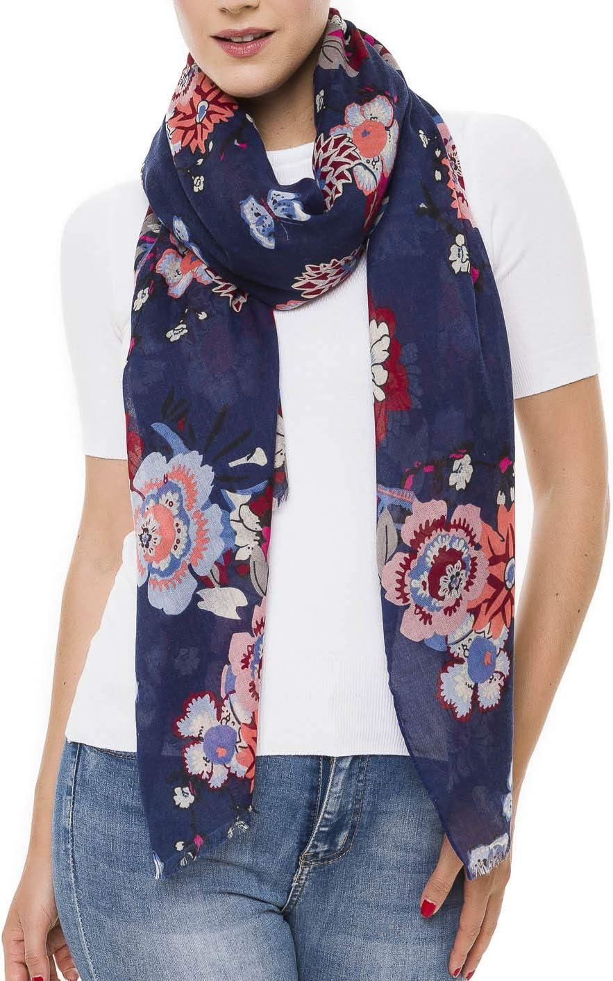 MELIFLUOS DESIGNED IN SPAIN Scarf for Women Lightweight Floral Flower for Summer Fall Scarves Shawl Wrap(Valencia Collections 22 – Blue Flower)