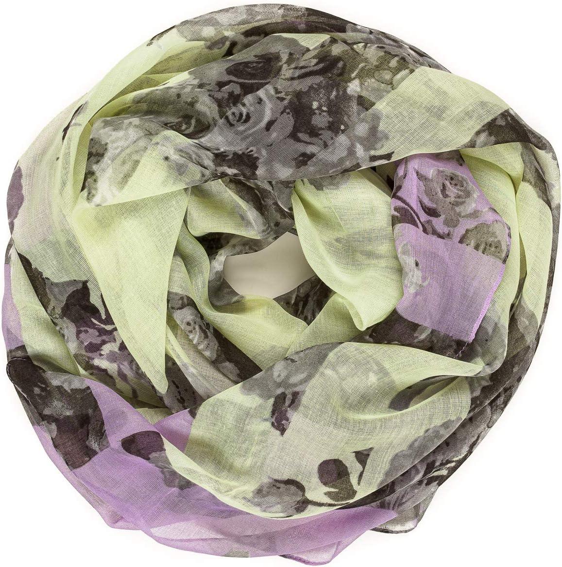 MELIFLUOS DESIGNED IN SPAIN Scarf for Women Lightweight Floral Flower for Summer Fall Scarves Shawl Wrap(Valencia Collections 33 – Green Purple Floral)