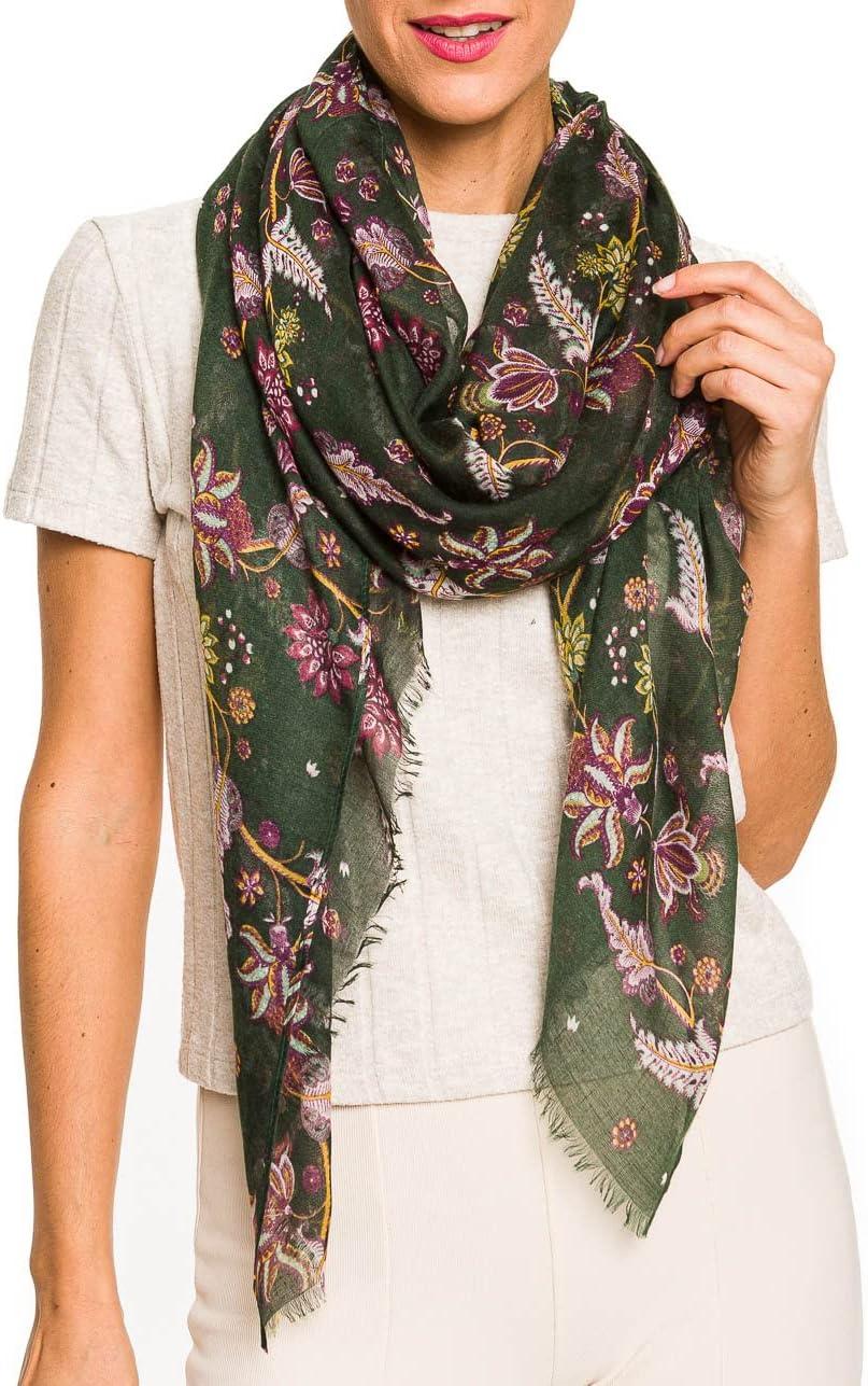 MELIFLUOS DESIGNED IN SPAIN Scarf for Women Lightweight Floral Flower Scarves for Summer Fall Shawl Wrap(Barcelona Collections 43 – Green Paisley Floral)