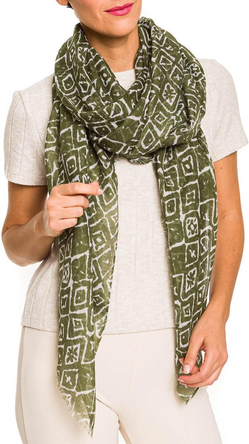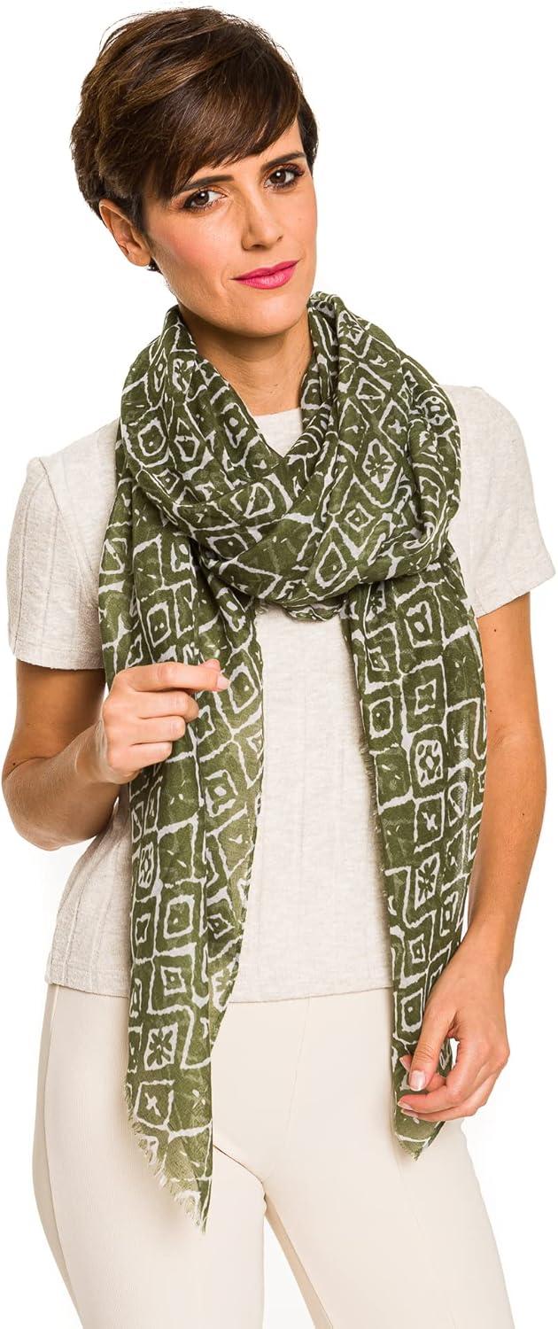 MELIFLUOS DESIGNED IN SPAIN Scarf for Women Lightweight Paisley Fashion for Summer Fall Scarves Shawl Wrap(Cordoba Collection 5 – Green Geometric Pattern)