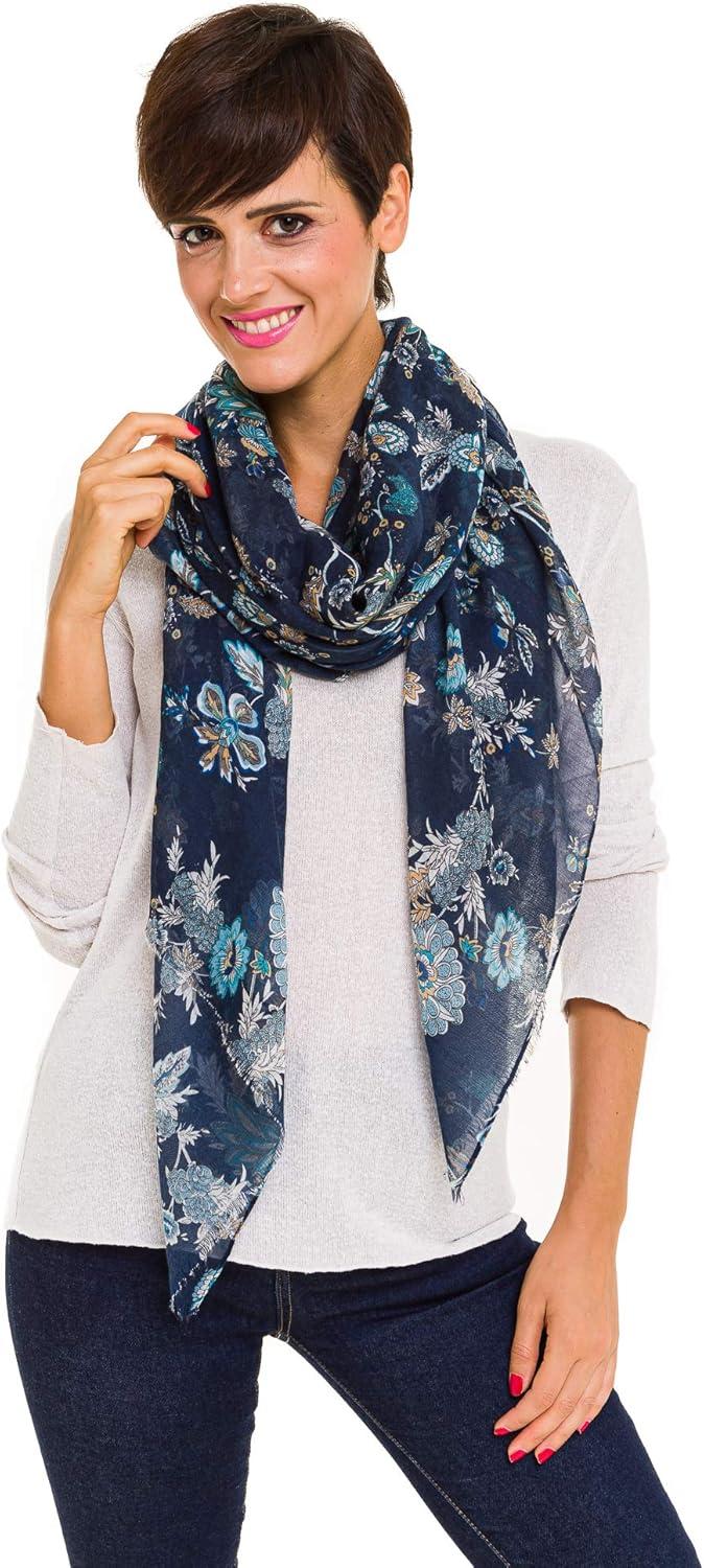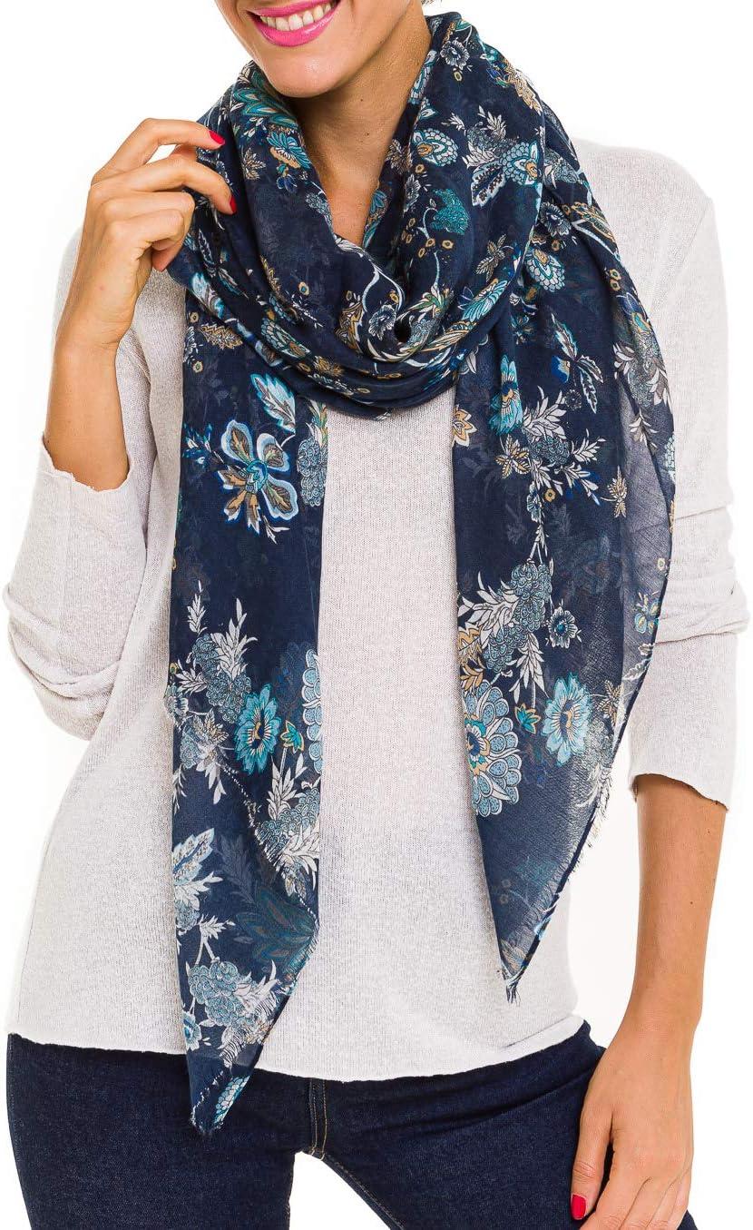 MELIFLUOS DESIGNED IN SPAIN Scarf for Women Lightweight Paisley Fashion for Summer Fall Scarves Shawl Wrap(Cordoba Collection 6 – Blue Floral)