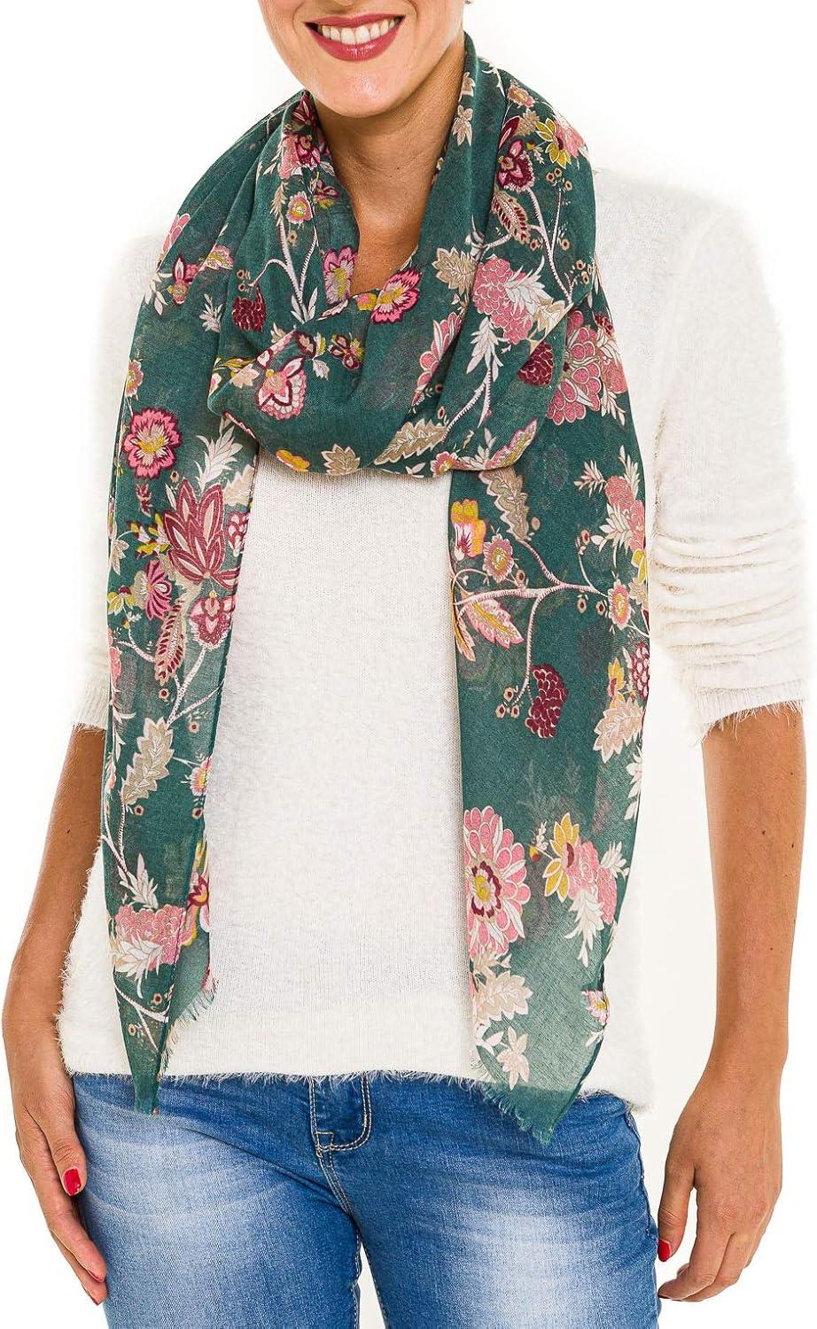 MELIFLUOS DESIGNED IN SPAIN Scarf for Women Lightweight Paisley Fashion for Summer Fall Scarves Shawl Wrap(Cordoba Collection 6 – Green Floral)