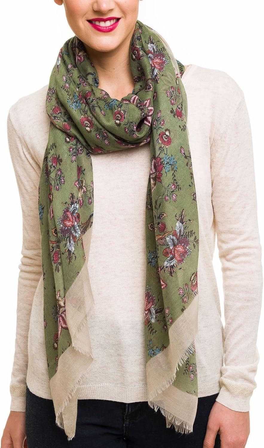 MELIFLUOS DESIGNED IN SPAIN Scarf for Women Lightweight Paisley Fashion for Summer Fall Scarves Shawl Wrap(Cordoba Collection 9 – Green With Beige Border)
