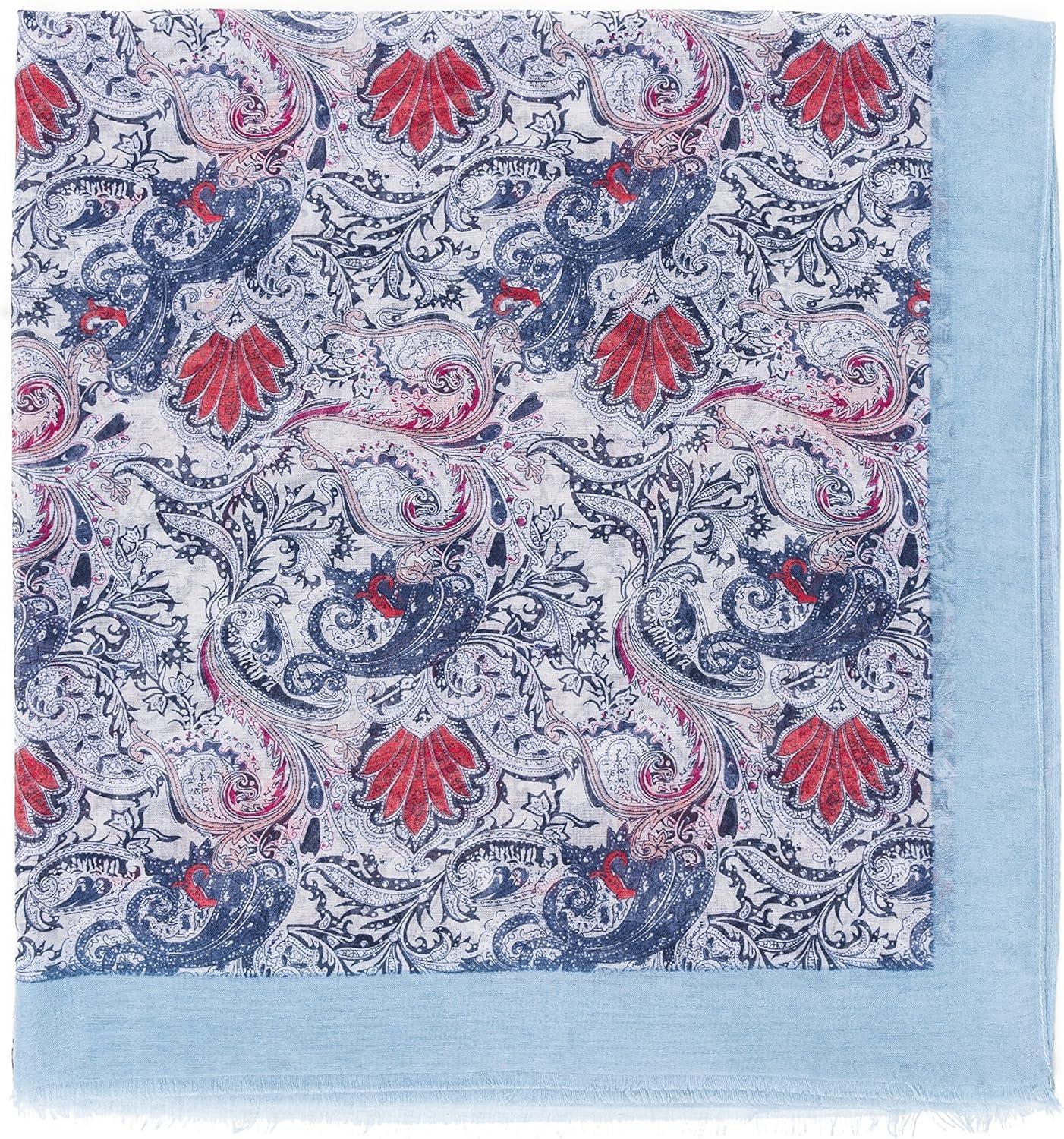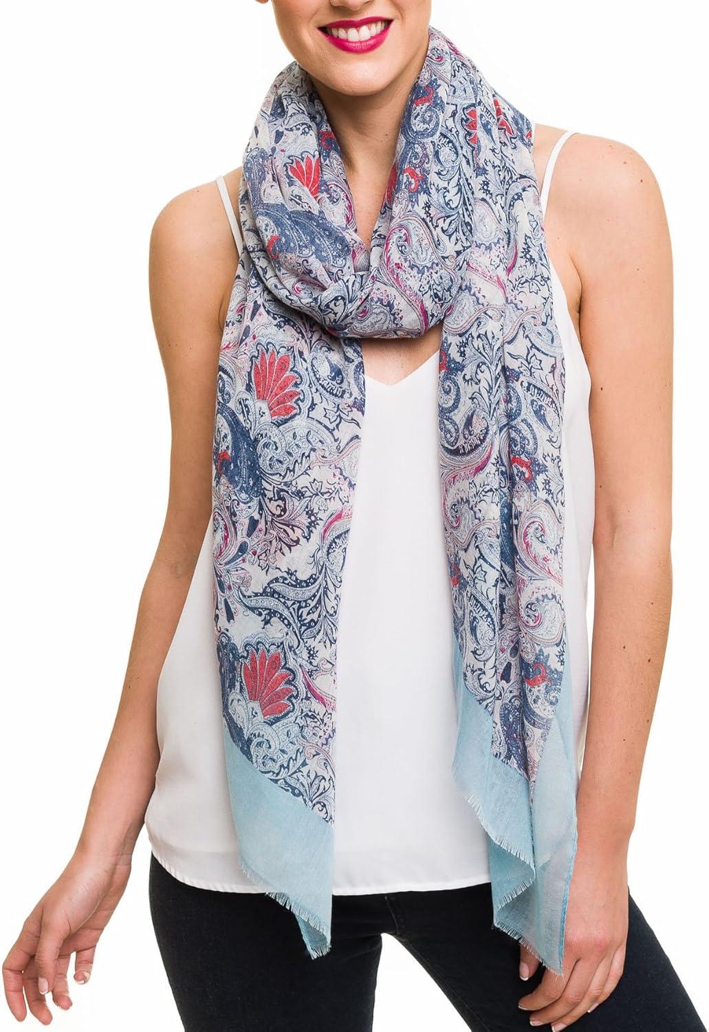 MELIFLUOS DESIGNED IN SPAIN Scarf for Women Lightweight Paisley Fashion for Summer Fall Scarves Shawl Wrap(Cordoba Collections 10 – Gray With Blue Border)