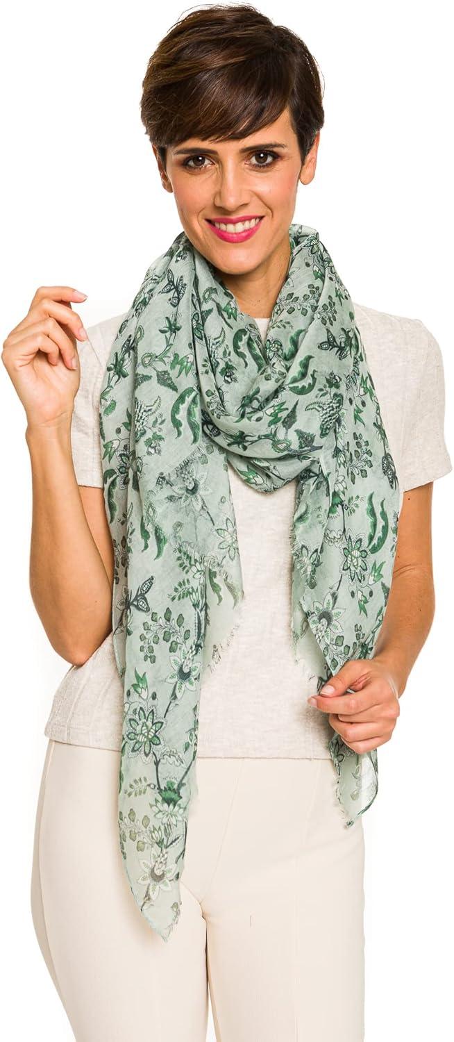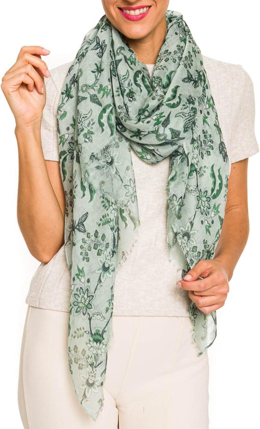 MELIFLUOS DESIGNED IN SPAIN Scarf for Women Lightweight Paisley Fashion for Summer Fall Scarves Shawl Wrap(Cordoba Collections 18 – Green Flower)