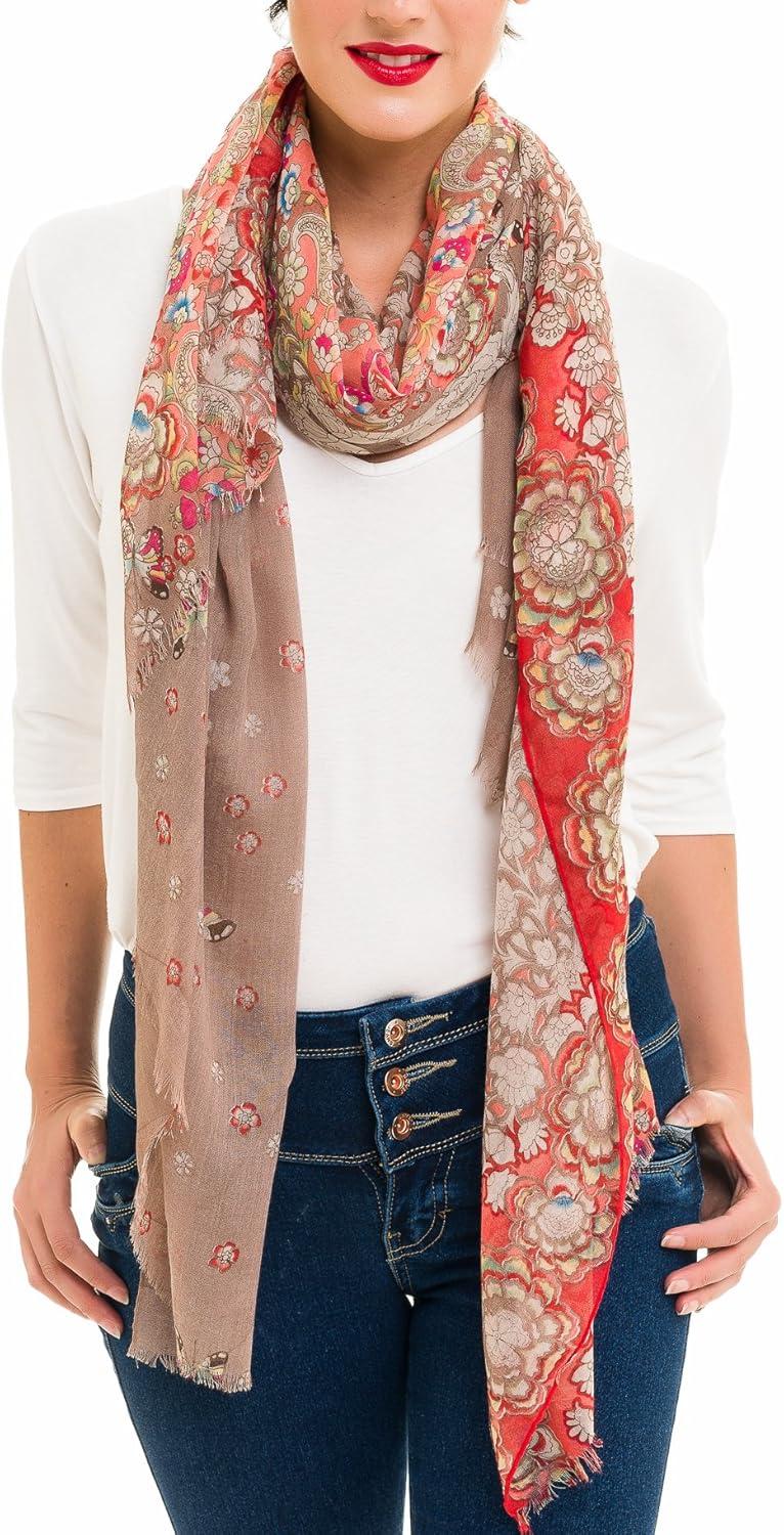 MELIFLUOS DESIGNED IN SPAIN Scarf for Women Lightweight Paisley Fashion for Summer Fall Scarves Shawl Wrap(Cordoba Collections 19 – Brown Paisley Floral)