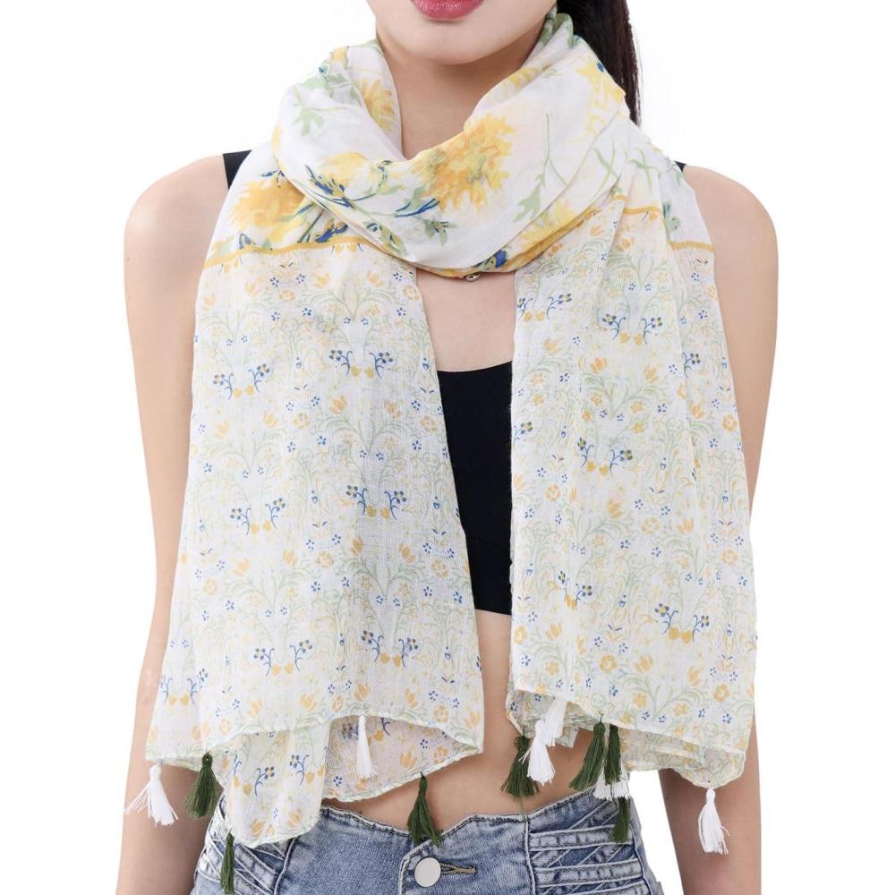 MELIFLUOS DESIGNED IN SPAIN Scarf for Women Lightweight Paisley Fashion for Summer Fall Scarves Shawl Wrap(Madrid Collections 52- Yellow Floral)