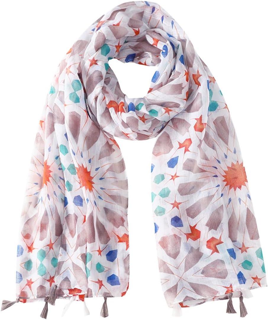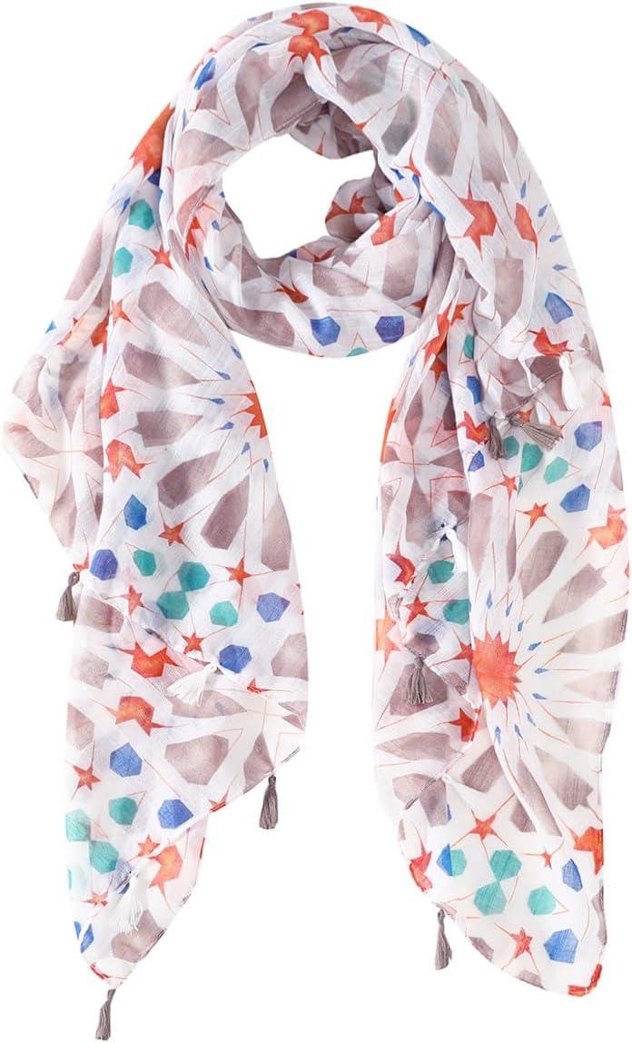 MELIFLUOS DESIGNED IN SPAIN Scarf for Women Lightweight Paisley Fashion for Summer Fall Scarves Shawl Wrap(Madrid Collections 54 – White Shape Design)