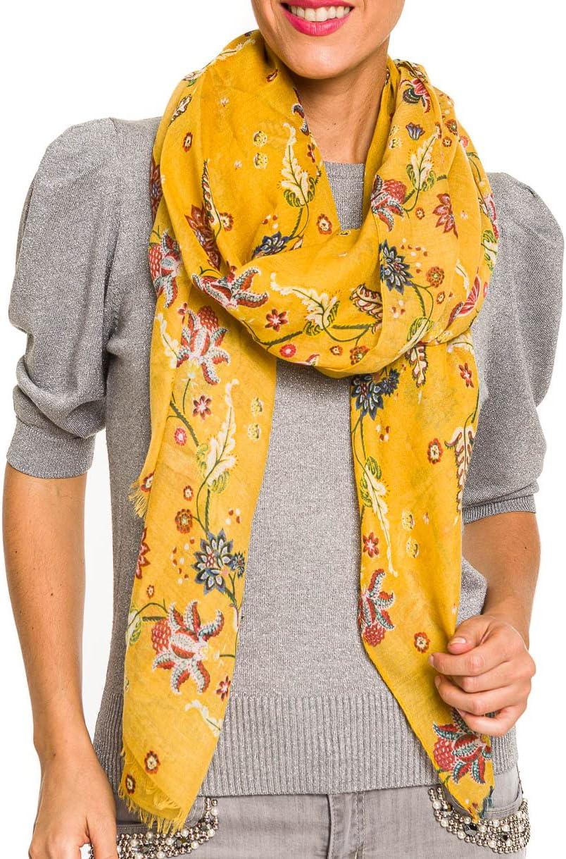 MELIFLUOS DESIGNED IN SPAIN Scarf for Women Lightweight Paisley Fashion for Summer Fall Scarves Shawl Wrap(Sevilla Collection 3 – Yellow Floralpattern)