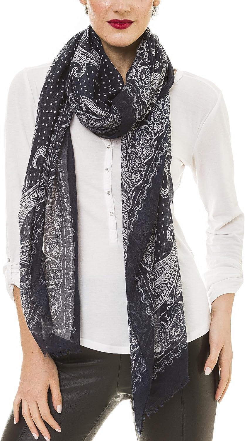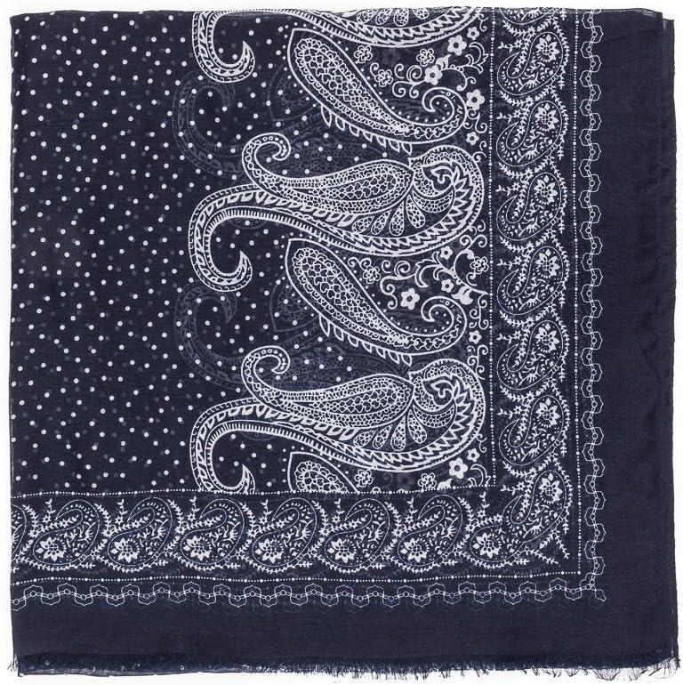 MELIFLUOS DESIGNED IN SPAIN Scarf for Women Lightweight Paisley Fashion for Summer Fall Scarves Shawl Wrap(Sevilla Collection 9 – Navy With White Paisley)