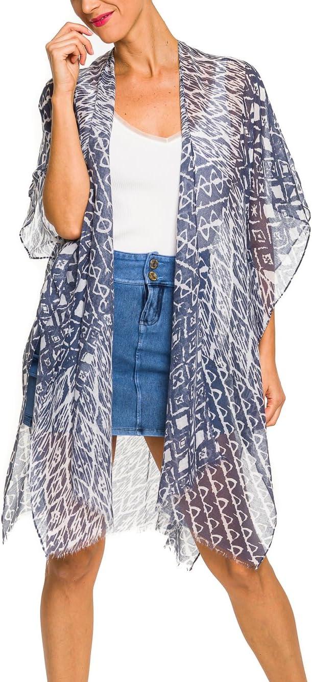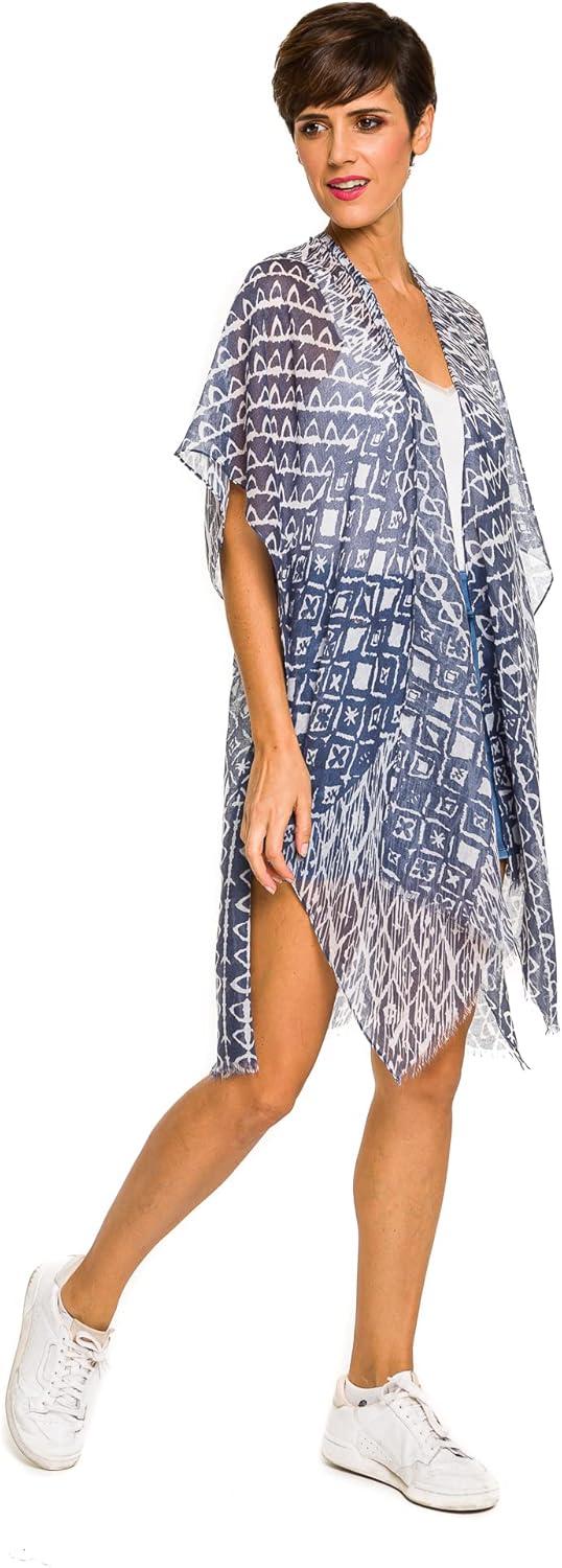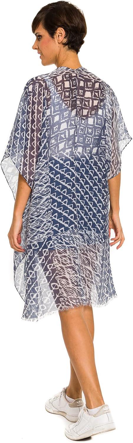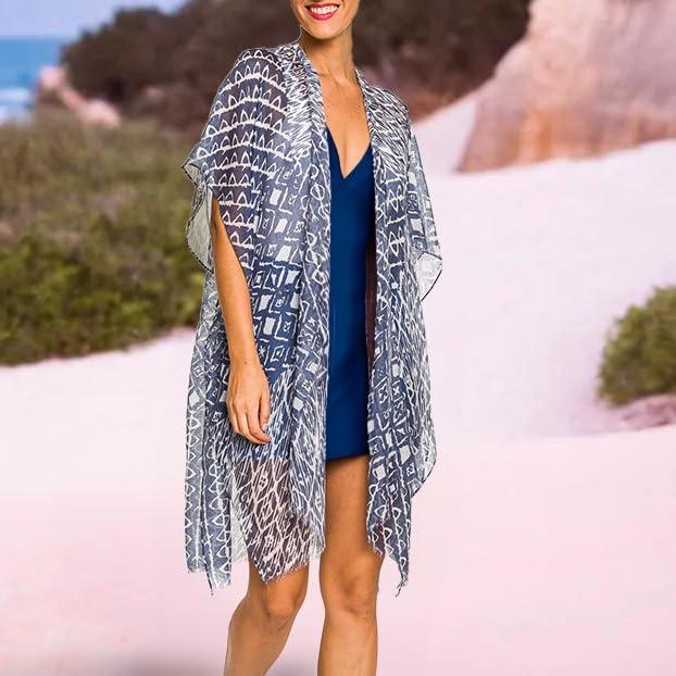 MELIFLUOS DESIGNED IN SPAIN Women’s Beach Cover Up Swimsuit Kimono Pareo Sarong Beach Wear Dress for Summer(Marbella Collection 1 – Blue Geometric Design)