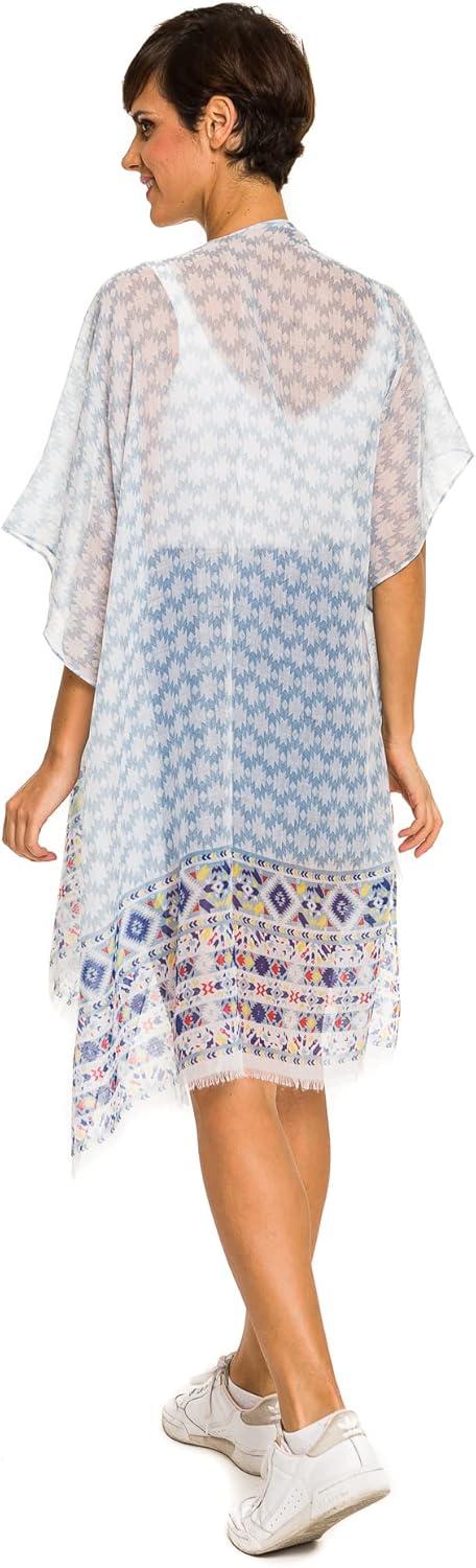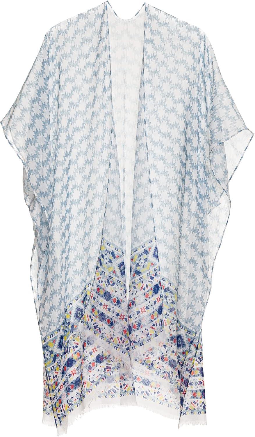 MELIFLUOS DESIGNED IN SPAIN Women’s Beach Cover Up Swimsuit Kimono Pareo Sarong Beach Wear Dress for Summer(Marbella Collection 1 – Light Blue Geometric Design)