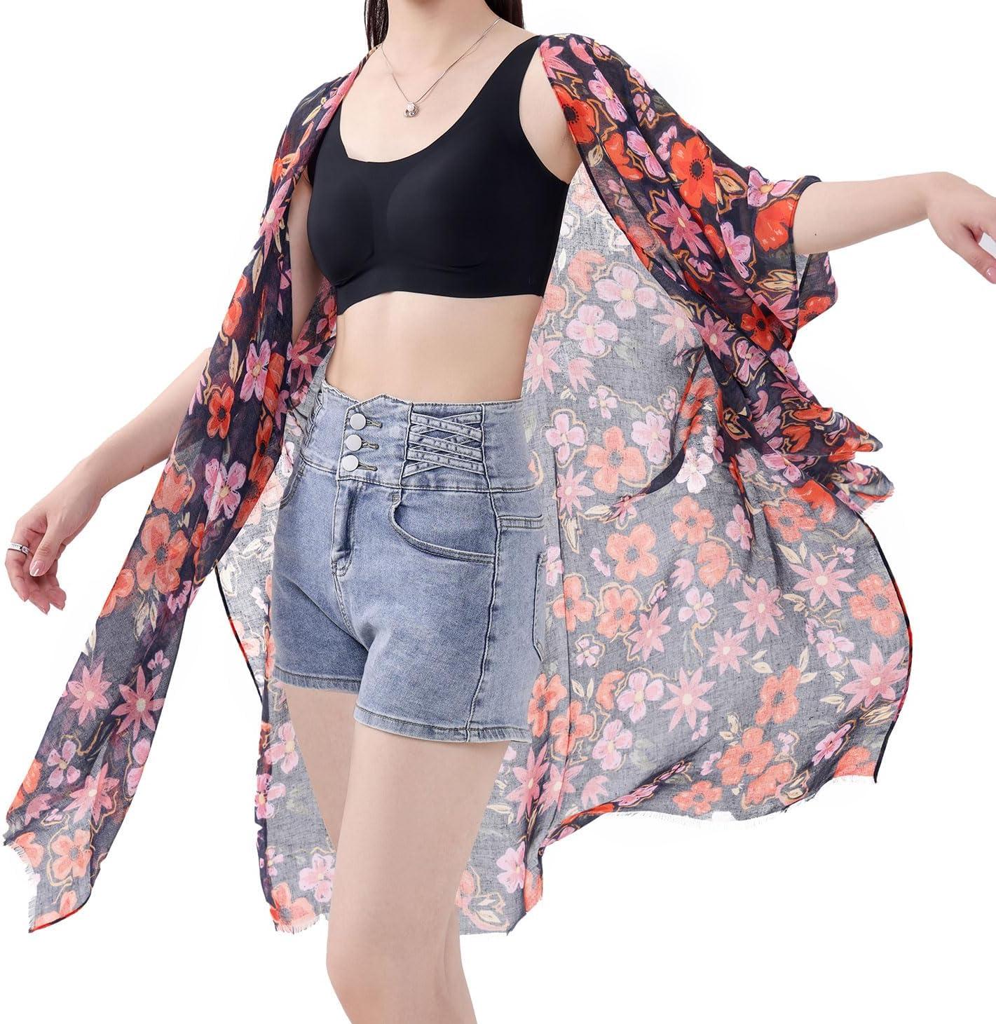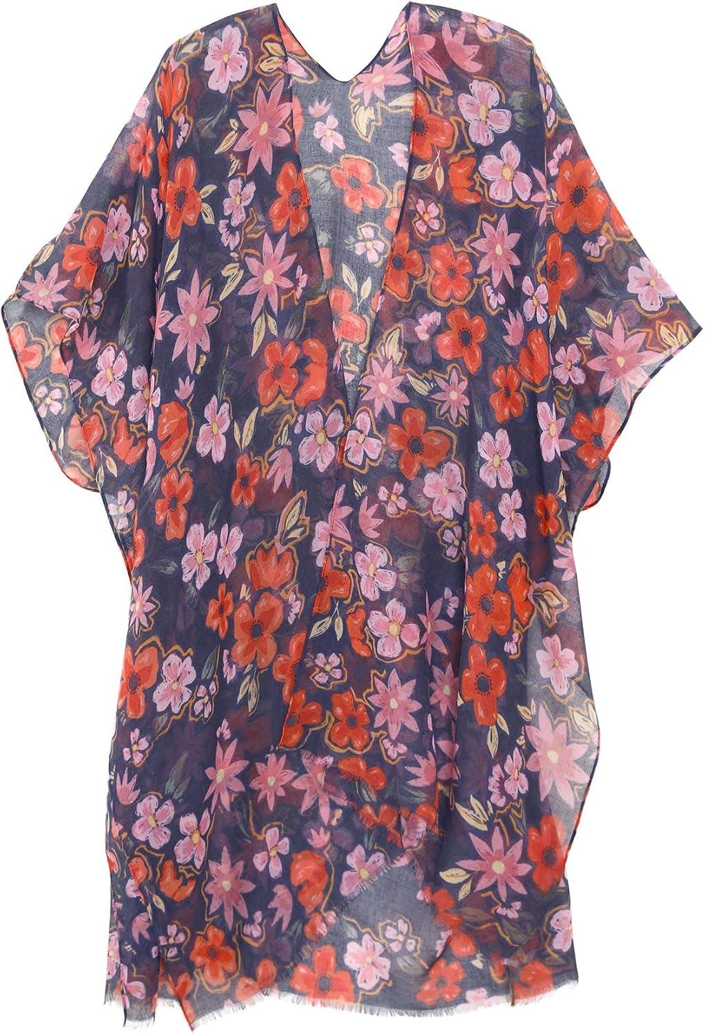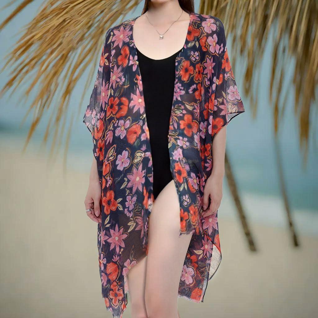 MELIFLUOS DESIGNED IN SPAIN Women’s Beach Cover Up Swimsuit Kimono Pareo Sarong Beach Wear Dress for Summer(Marbella Collection 2 – Black and Red Flower Pattern)
