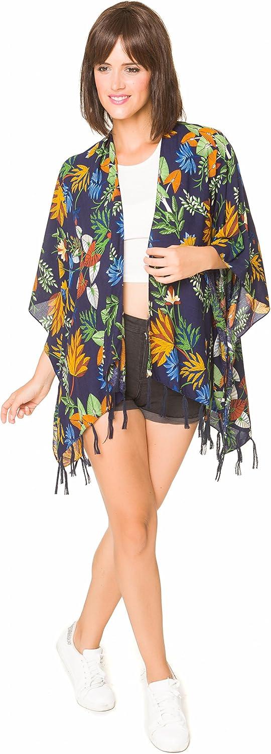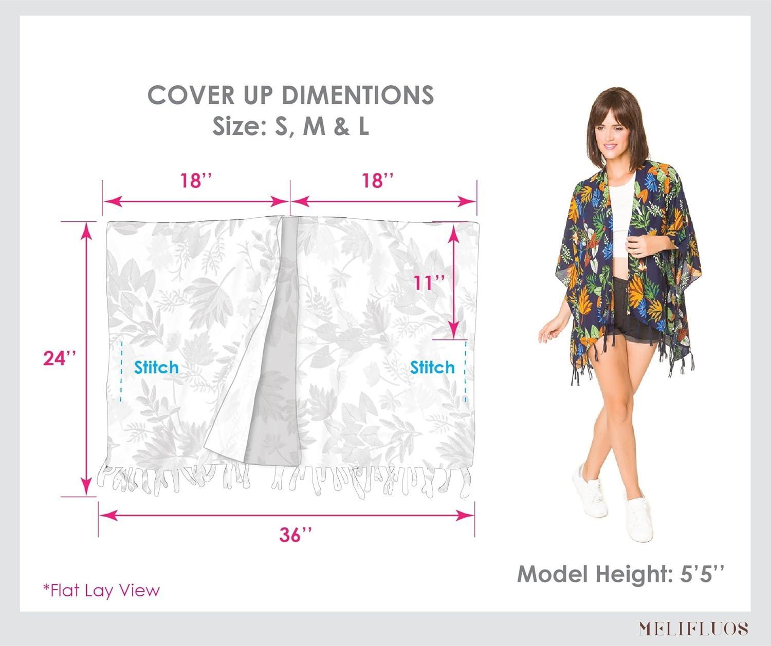 MELIFLUOS DESIGNED IN SPAIN Women’s Beach Cover Up Swimsuit Kimono Pareo Sarong Beach Wear Dress for Summer(Marbella Collections 23 – Navy Flower)