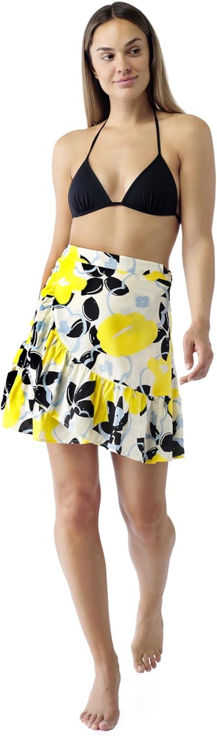 MELIFLUOS DESIGNED IN SPAIN Women’s Short Sarong Beach Skirt Breathable Lightweight Pareo Wrap Bikini Swimsuit Cover Up(Denia Collection 4 – Flower Yellow)