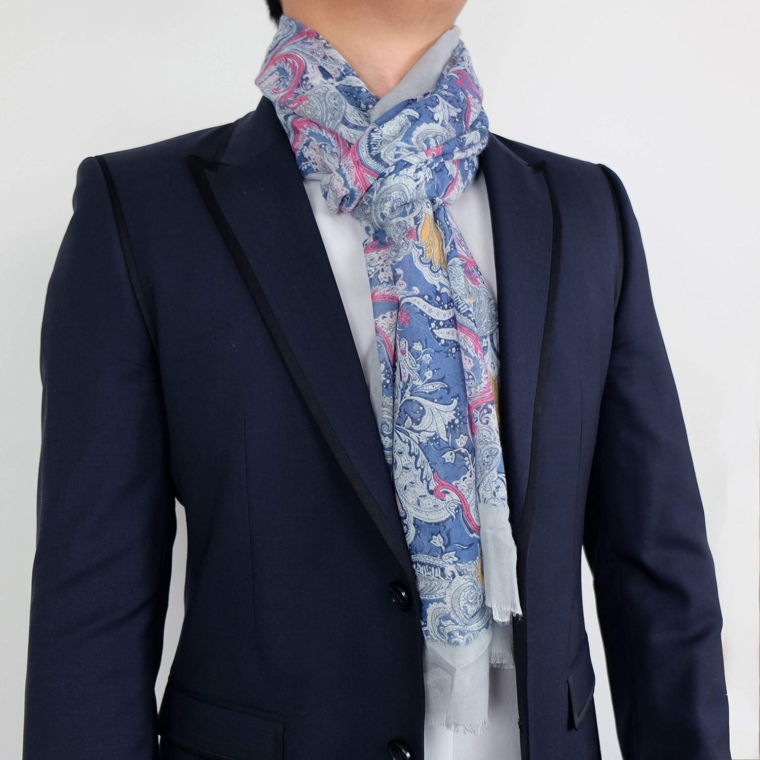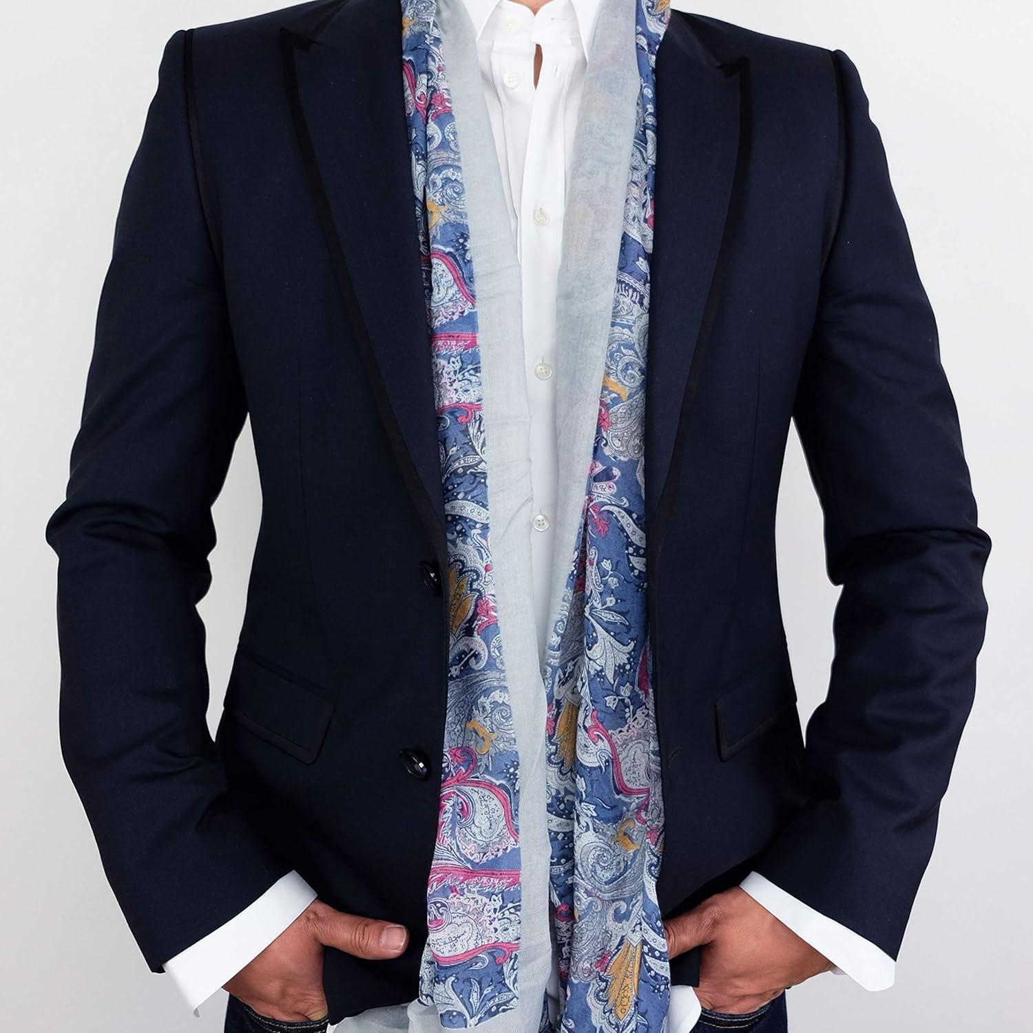 Scarf for Men Lightweight Paisley Fashion Scarves Man Gentleman Summer Fall(Oviedo Collection 3 – Gray Paisley)