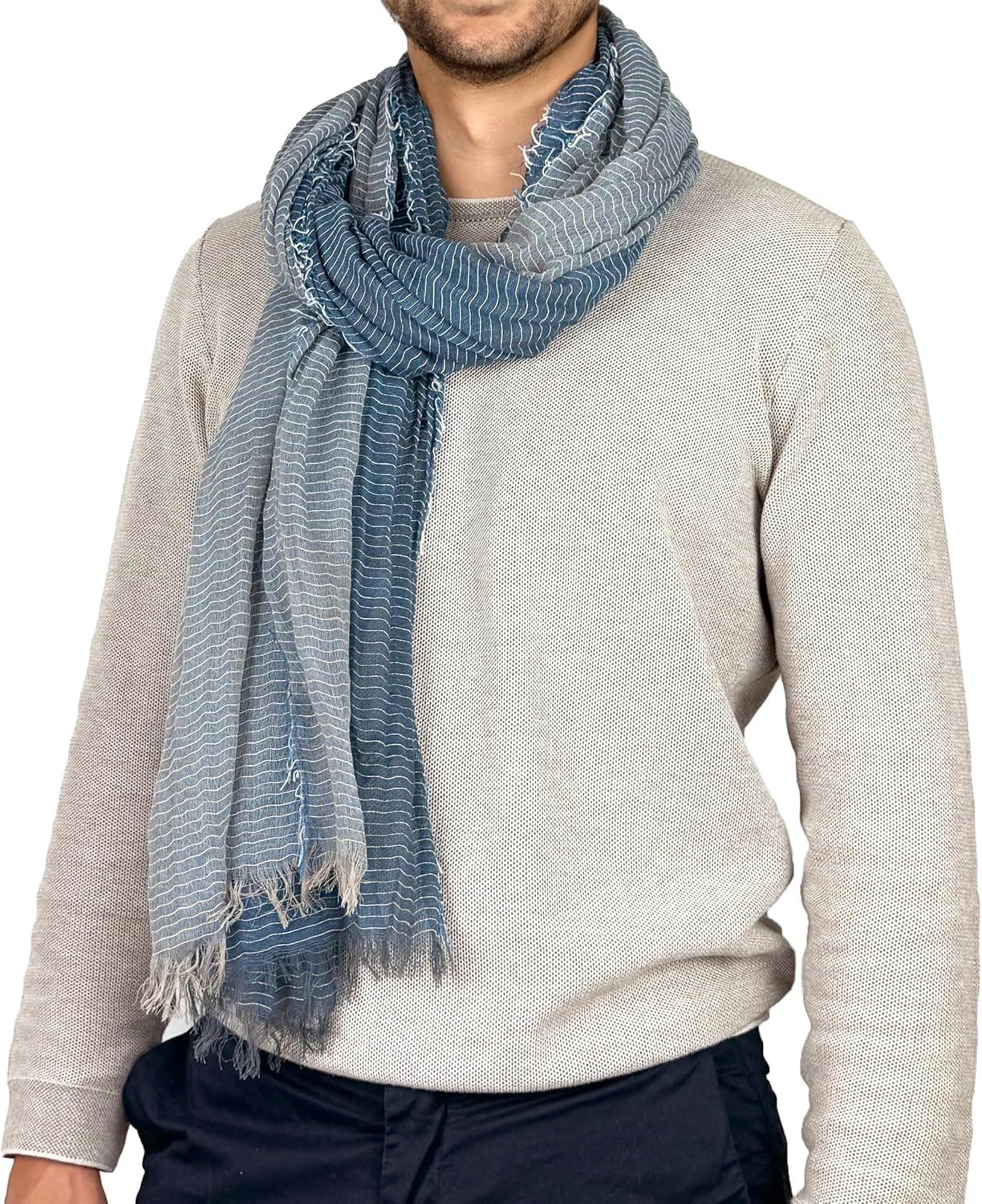 Scarf for Men Lightweight Paisley Fashion Scarves Man Gentleman Summer Fall(Oviedo Collections 14 – Blue and Gray Strip)
