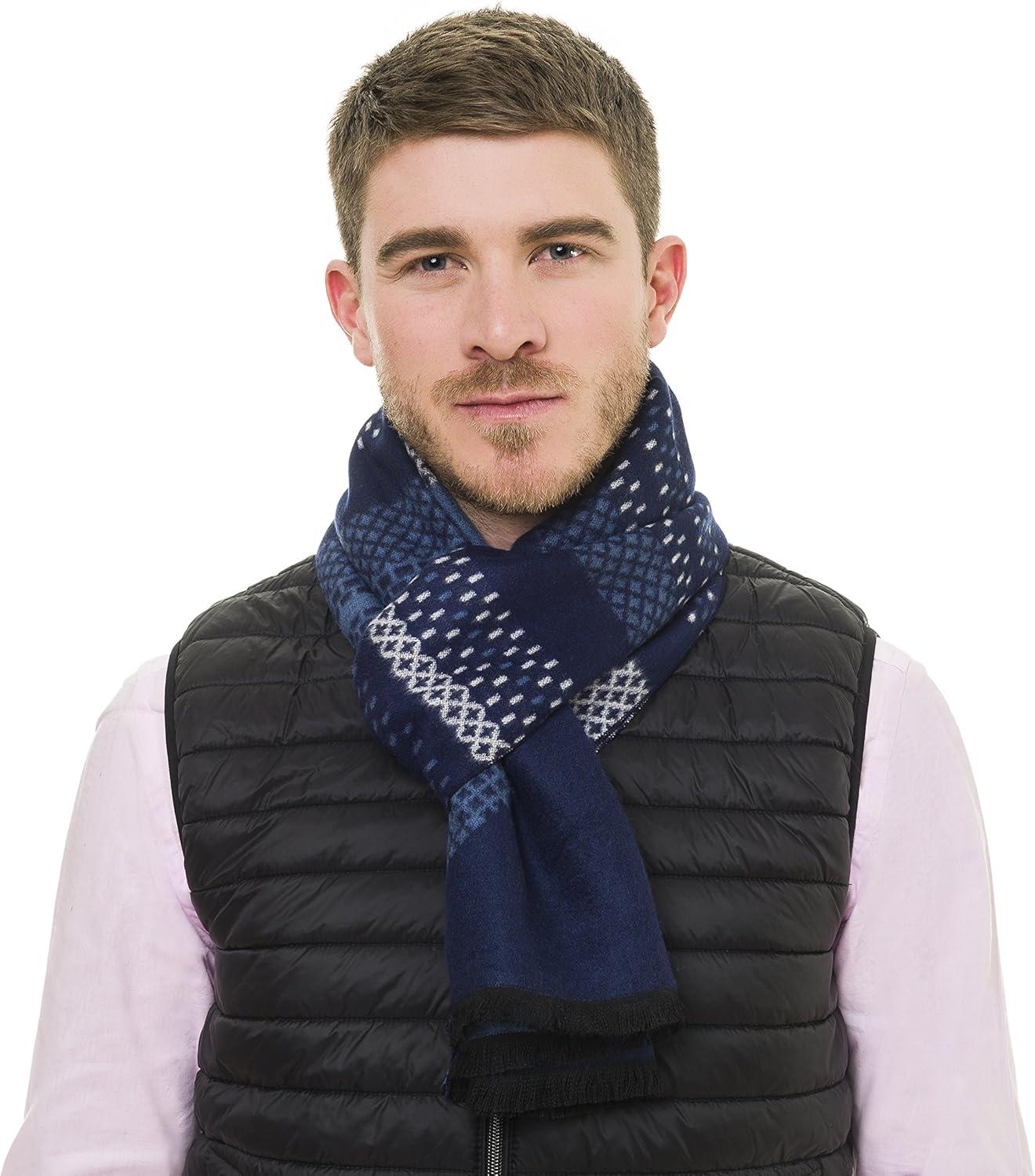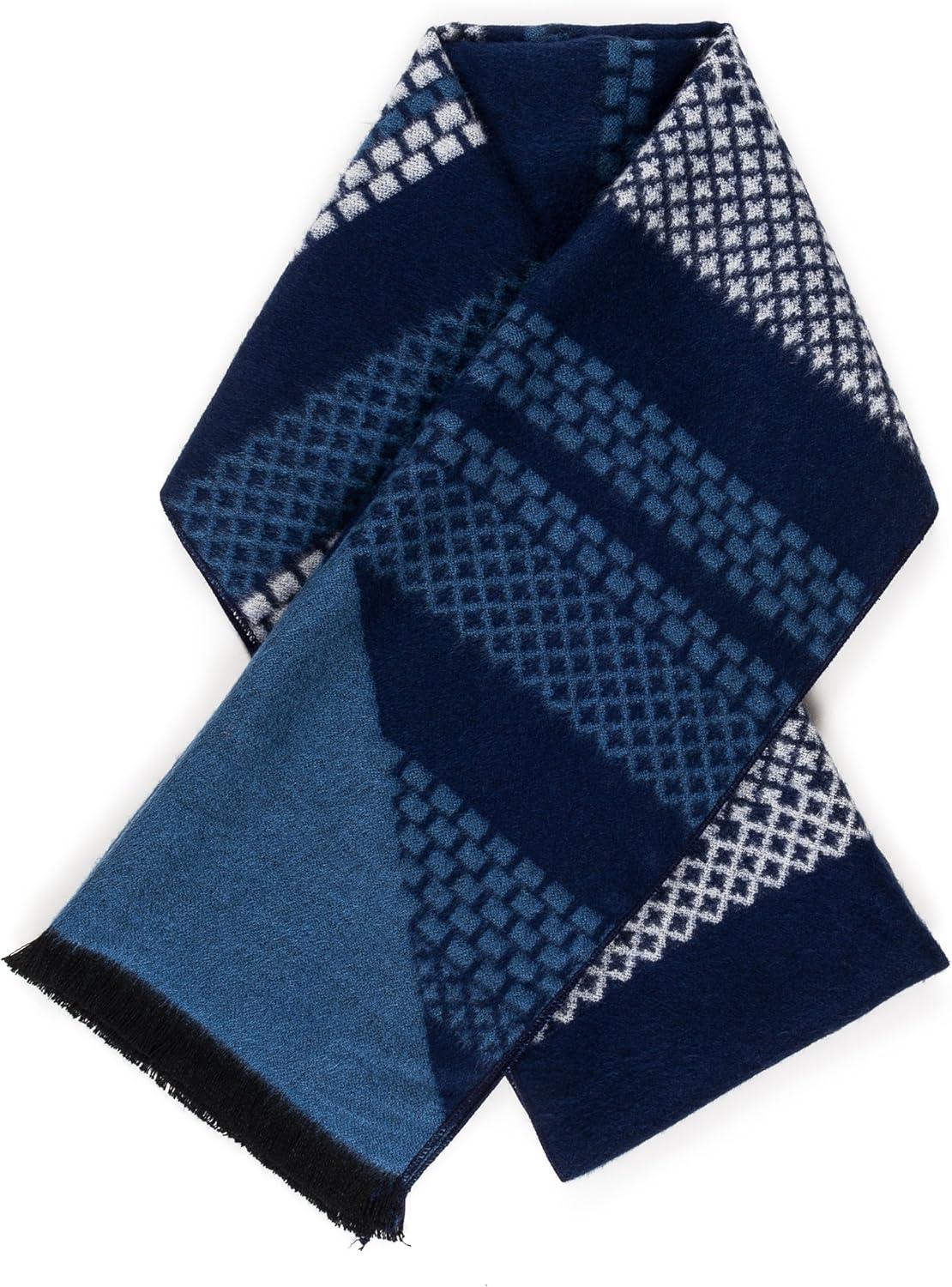 Scarf for Men Reversible Elegant Classic Cashmere Feel Scarves for Fall Winter(Bilbao Collection 7 – Double Blue Geometric)