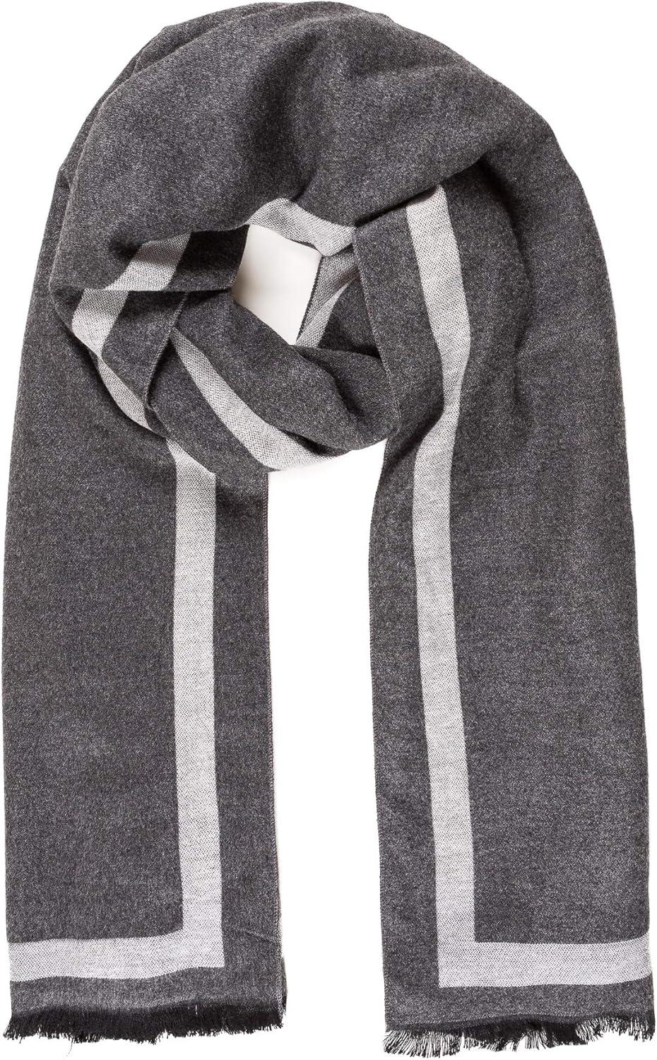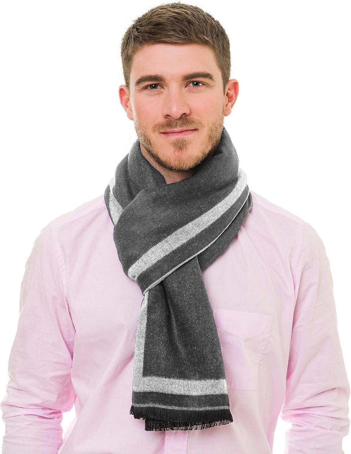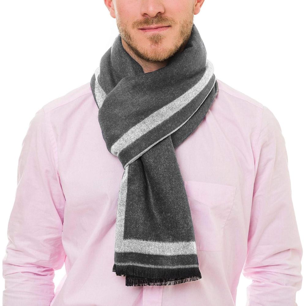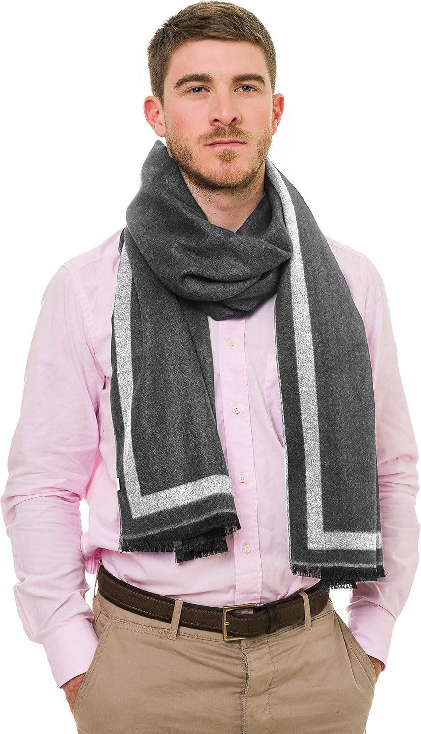 Scarf for Men Reversible Elegant Classic Cashmere Feel Scarves for Fall Winter(Santander Collection 5 – White Gray)