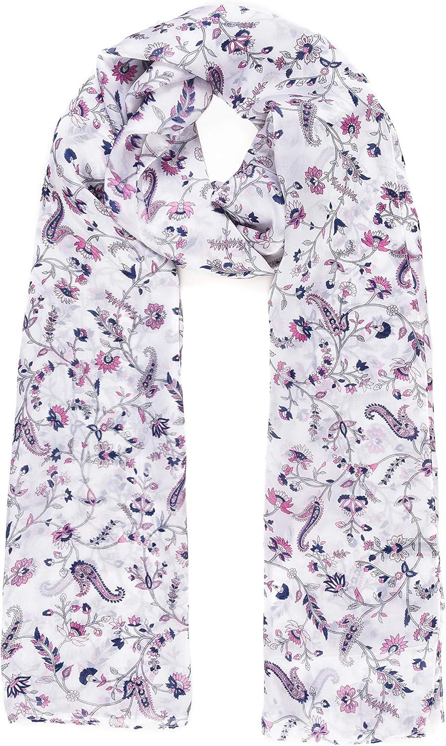 Scarf for Women Lightweight Silk Feel Summer Fall Oblong Fashion Scarves Shawl(Jaen Collection 5 – Off White With Pink Floral)