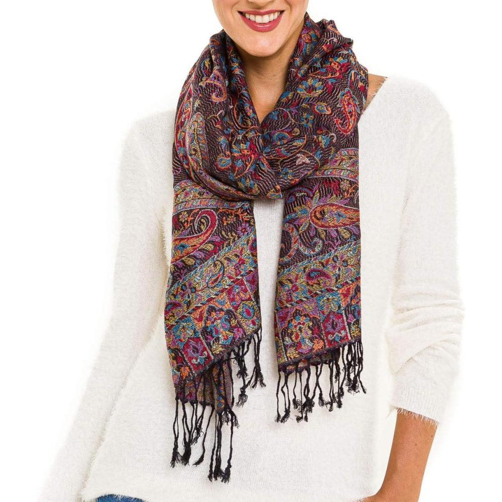 Scarf for Women Spanish Design Elegant Long Shawl Scarves for Summer Fall(Baza Collection – Brown Paisley)