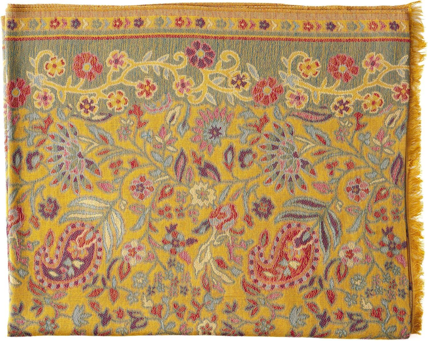 Scarf for Women Spanish Design Elegant Long Shawl Scarves for Summer Fall(Clares Collection – Floral Pattern Yellow)